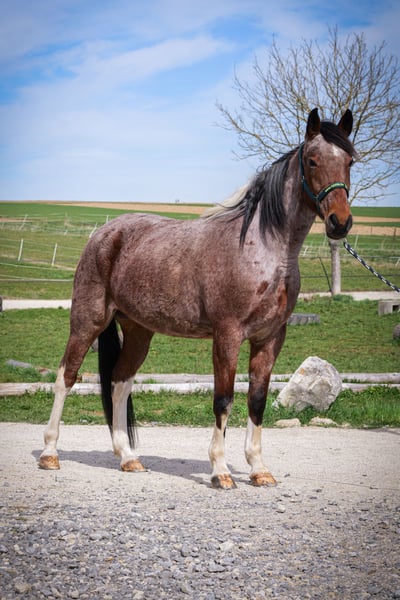 Nitros Dirty Bomb, affectionately called Toffee by us, is a four-gaited mare born in the USA with a refined temperament. She is currently in further training. Having already had foals, she has proven to be a good mother and is also of interest for breeding purposes. Toffee demonstrates a lightly responsive, clear-takted tölt. Her basic gaits are also of good quality. A hardworking horse that works with motivation and is always eager to improve. Her training is being reinforced and still offers room for development. A charming mare with a distinctive presence for riders seeking a stable horse with solid gait quality and further growth potential. Video available. Due to personal reasons, the owner is seeking a new home for this wonderful mare. Space before price.
