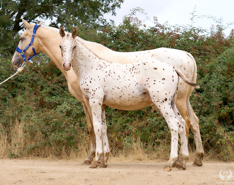 🐴 Cherokee ist ein beeindruckendes CDE-Hengstfohlen mit Appaloosa-Leopard-Färbung auf Fuchsbasis. Er trägt die Gene LP (Appaloosa) und PATN1, ist an beiden Hinterbeinen weiß gestiefelt und besitzt eine schöne Blesse. Seine Fellfarbe und Morphologie sind ein echtes Highlight. Der „Liebling“ und herausragendste Nachwuchs des Jahrgangs 2025, der unangefochtene Star, wurde am 28. Mai geboren. Groß und sehr harmonisch, mit einem kraftvollen Körperbau für Sport und Reiterei sowie einem süßen und anhänglichen Charakter – ein Fohlen, das sofort begeistert. ♀️ Mutter: Nana Monte Alegre Appaloosa-Stute mit Spotted-Blanket-Zeichnung auf Palominobasis, vierfach weiß und mit Maske, eingetragen als Zuchtstute bei ANCADES. Eine ganz besondere Stute mit großer Edelmut, ausgeglichenem Körperbau und guten Bewegungen. Sehr angenehm und liebevoll im Umgang. Cherokee ist ihr viertes Fohlen und stammt von einer der bewährtesten Stuten von Monte Alegre. ♂️ Vater: Bucanero Homozygoter CDE-Hengst auf Fuchsbasis aus der sportlichen Dhym Diamond-Linie. 🔬🧬 Genetik und Farbe: Fuchs-Appaloosa – Leopard European Spot (( ee -- LPlp PATN1patn1 )) 📄 Verkauf mit offizieller ANCADES-Bescheinigung / Hauptregister CDE. 📲 Kontakt: 🟢 WhatsApp: +34 639 522 420 🔴 Instagram: @yeguadamontealegre 📸 Fotografie: @almarevisual