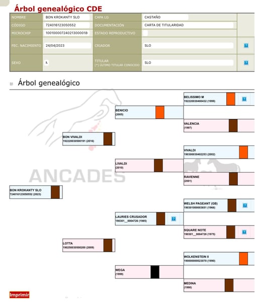 For Sale: Spanish Sport Horse! We are pleased to present an exceptional Spanish sport horse, a candidate destined to excel in the dressage arena. Born in 2023, this beautiful light chestnut gelding is an ideal partner for riders seeking a horse with great potential and a well-balanced temperament. Sired by Bon Vivaldi out of Lotta (Lauries Crusador). **Features:** - **Breed:** Spanish Sport Horse - **Status:** Gelding - **Year of Birth:** 2023 - **Color:** Light chestnut - **Discipline:** Dressage This horse has been carefully bred and possesses a gentle nature, making him an excellent choice for both experienced riders and those new to the sport of riding. If you are interested in learning more about this magnificent individual or arranging a visit, please do not hesitate to contact us. Don’t miss the opportunity to add this talented horse to your equestrian family!