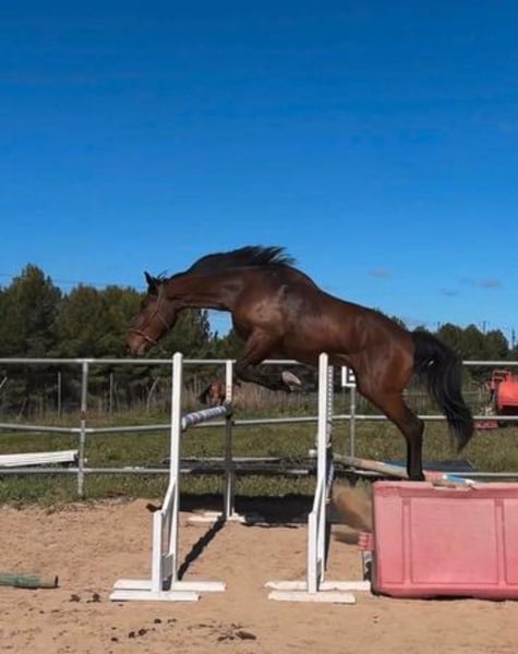 ¡Oportunidad de adquirir un magnífico caballo de deporte español! Se vende hermoso caballo castrado, nacido en 2021, de raza española, con una alzada de 179 cm. De color castaño, este ejemplar destaca por su talento en salto y su excelente carácter, ideal para jinetes que buscan un compañero de confianza para competición o entrenamiento. Perfecto para quienes desean un caballo con potencial y elegancia. No pierda la oportunidad de conocerlo y descubrir su gran capacidad en el mundo del deporte ecuestre. Para más información y concertar una visita, no dude en contactarnos.