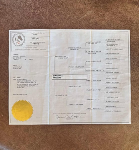 ONLINE-AUKTION Geben Sie Ihre Gebote unter www.PlatinumEquineAuction.com ab. Startgebot $3500 Die Auktion endet am 16. März 2025. Brauchen Sie einen neuen Sattel? Schauen Sie sich White Rock Saddles auf unserer Website oder Facebook an! Darf ich vorstellen: Ursa! (Eingetragen bei der SSHBEA als Dixie Diva) Ursa ist eine atemberaubende sorrel tobiano, 8 Jahre alt, Gangpferd Spotted Saddle Horse Stute, die sowohl schön und intelligent ist. Sie ist stolze 16h groß und auffällig, ihre lange, dicke Mähne und ihr Schweif ziehen die Aufmerksamkeit auf sich, wo immer sie hingeht. Ursa lässt sich leicht einfangen, genießt es, gestriegelt und verwöhnt zu werden, und lässt sich geduldig anbinden, so lange man es möchte. Sie gibt mit Leichtigkeit ihre Füße, steht ruhig für den Hufschmied und hat überhaupt nichts dagegen, gesattelt zu werden. Sie steht fest auf dem Reitplatz und läuft beim Aufsitzen nicht weg. Ursa gleitet sowohl im flachen Schritt als auch in der Showgangart - sie kann in der Arena reiten und hat Strecken vom Südosten bis zur Westküste zurückgelegt. Sie lädt und entlädt sich selbstbewusst an neuen Orten. Sie ist wachsam und neugierig und hat viel Persönlichkeit - sie könnte der nächste großartige Zuwachs für Ihre Familie sein! Rufen Sie Courtney von der Thunderbird Ranch unter 406.250.9530 an, wenn Sie Fragen haben. Sie befindet sich in Pioneertown, CA. ONLINE-AUKTION Geben Sie Ihre Gebote unter www.PlatinumEquineAuction.com ab. Anfangsgebot $3500 Die Auktion endet am 16. März 2025. Brauchen Sie einen neuen Sattel? Schauen Sie sich White Rock Saddles auf unserer Website oder Facebook an!