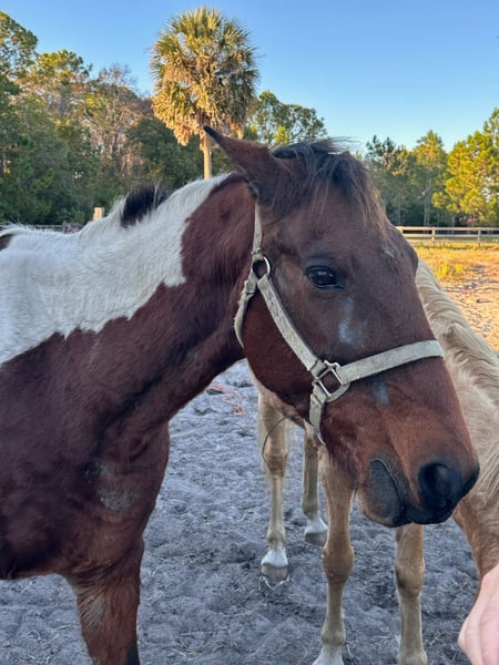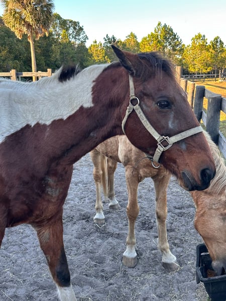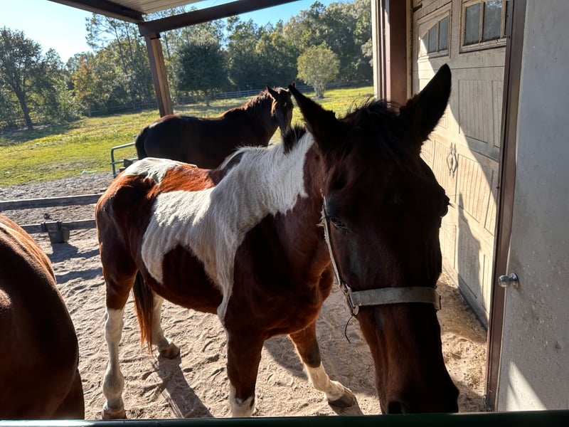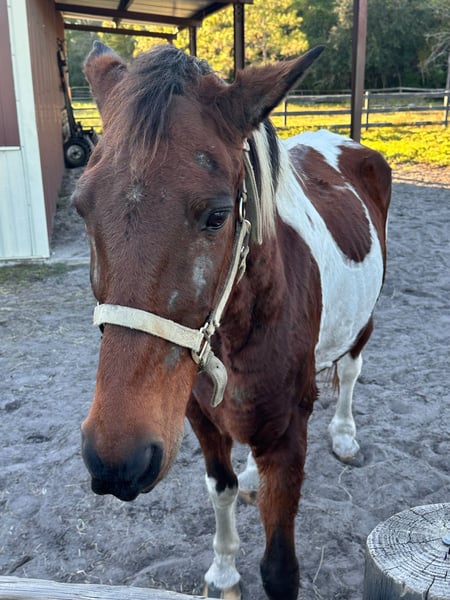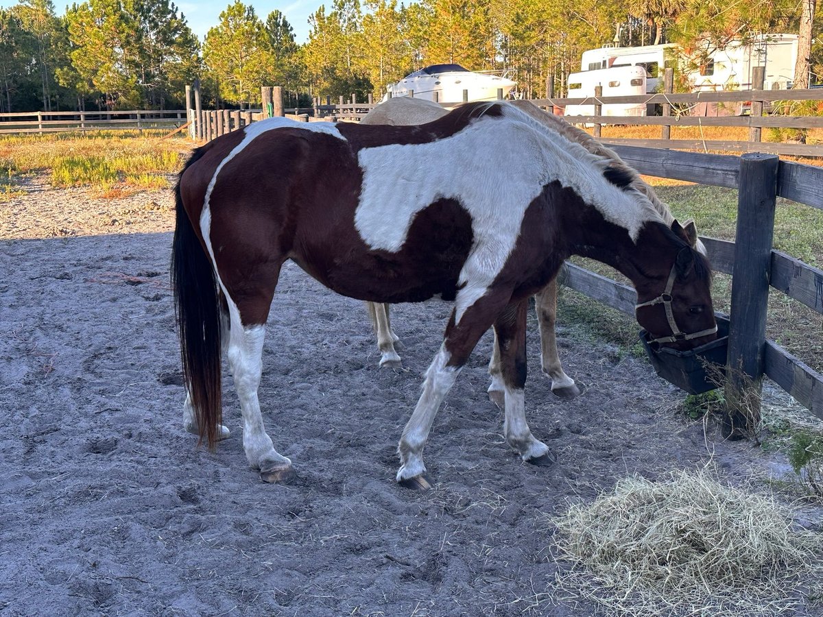 Sweet Companion Mare in Pierson, Florida THE PERFECT PASTURE PAL Bunny is a 16-year-old Tricolor Tennessee Walking Horse looking for her forever retirement home. While she can no longer be ridden due to worn tendons, she is the ultimate "heart horse" and companion. ABOUT BUNNY: * PERSONALITY: A true sweetheart! She gives licks and kisses and has a very kind, sensitive soul. * RAISED RIGHT: She is pasture-raised, sure-footed, and loves the outdoor life. * HEALTH: Current Negative Coggins (done 1 month ago) and well-maintained feet (done 1 month ago). THE IDEAL HOME: Bunny is seeking a quiet pasture and a person to love her. She is perfect as a buddy for another horse or as a beautiful companion for a peaceful farm. * FAVORITE THINGS: She will be your best friend for a peppermint or a butterscotch! If you have a quiet corner of your pasture and a lot of love to give, Bunny is waiting for you. Please call or text the owner Mike or his secondary contact, daughter Brittany