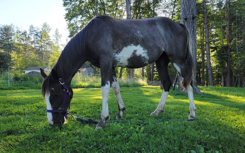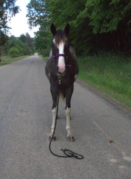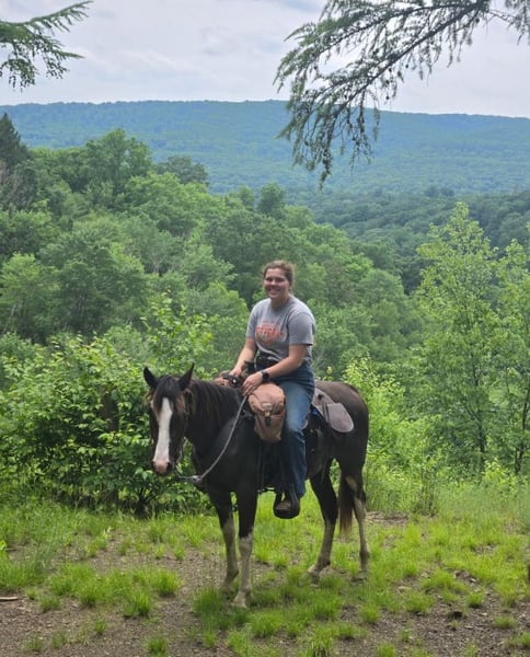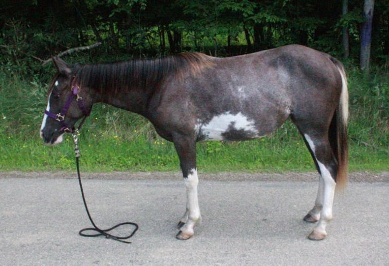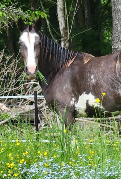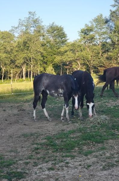 "AVAILABLE ON ONLINE HORSE AUCTION AT www DOT MagicHorseAuction DOT com BIDDING OPEN NOW thru TUESDAY | AUGUST 5TH! - BUY IT NOW AVAILABLE! *Final price will be determined on auction site* CONSIGNOR CONTACT INFO: Kristen Dunn 814-598-7000 LOCATION: Smethport, PA "Meet Gypsy, a gorgeous 2-year-old blue roan Sabino Kentucky Mountain/Walking Horse cross who is proving herself to be a truly exceptional young trail horse. Gypsy is predicted to reach a height of 14.2 with a stocky build she is registerable with the Kentucky Mountain Association and the Spotted Saddle Horse Association. Despite her age, Gypsy handles the trail with the confidence of an experienced trail horse whether its Water crossings, rocky terrain, fallen logs, or thick brush—nothing seems to phase her. From the first time under saddle, she has been calm, level-headed, and reliable, the same horse each ride. There’s been no buck, rear, or silliness—just a steady, willing attitude whether she’s riding alone or in a group. Gypsy is a sweetheart on the ground always looking for scratches. She’s often the one of the first to greet you in the pasture; she’s quiet and respectful—never dominant—and gets along well with all horses. Even when she’s in heat, you’d never know it; she remains calm and consistent in her behavior. She picks up all four feet and is good for the farrier, she currently has shoes all around, and is current on Coggins, rabies and vaccines. Gypsy is a dream to travel with, she loads easily and travels quietly. On weekend rides she highlines like a pro and stands patiently to be saddled, mounted, or dismounted—tied or ground tied. On the trail, Gypsy leaves camp ready for the day, packing saddle bags and rain gear like it’s second nature. She’s just looking for her next person to love on and trail with. - Located in Smethport, PA. PM for price or to come see her.