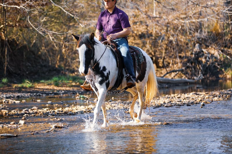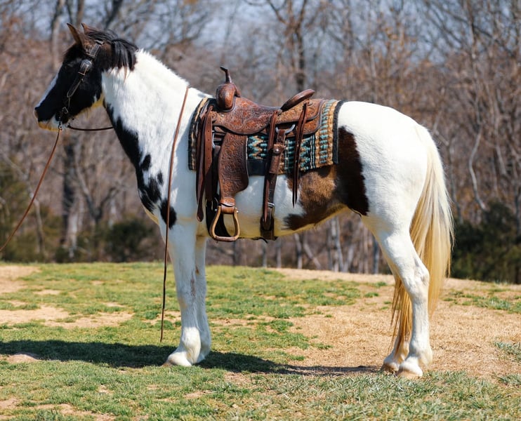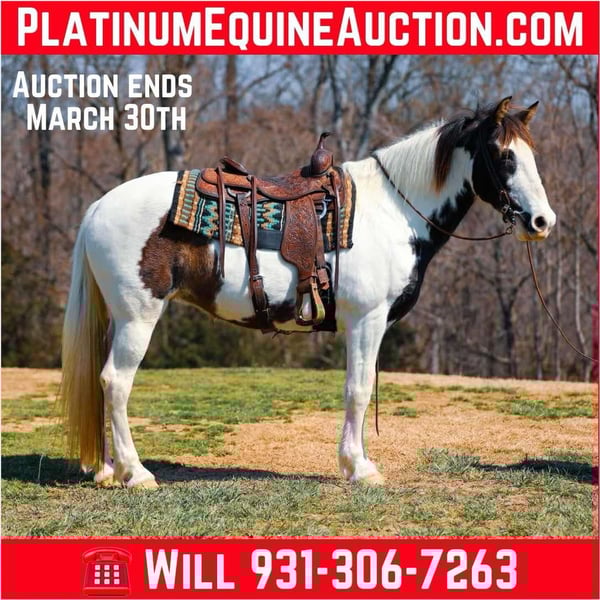 ONLINE AUCTION Place your bids at www.PlatinumEquineAuction.com Starting Bid $3500 Auction ends March 30th, 2025 Need a new saddle? Check out White Rock Saddles on our website or Facebook! MADELYN is an 11yr old gaited mare that stands 15.2hh and she is as wide as she is tall. Madelyn is a beautiful black/white tobiano and she has been trail ridden all over the southern part of the United States and is what we call a professional at it. No hill to steep and no river to deep! She is a seasoned pro on the trails, rocky terrain, ditches, creeks, deadfall it makes no difference she goes through it all! She covers ground in a very smooth and easy gait and is suitable for ANY level of rider. She stands to mounted, loves a bath, easy for the farrier and just about anything else you could want her to do she handles with ease. For more info on Madelyn Horses With Wisdom Will 931-306-7263 Located in Hampshire, TN. ONLINE AUCTION Place your bids at www.PlatinumEquineAuction.com Starting Bid $3500 Auction ends March 30th, 2025 Need a new saddle? Check out White Rock Saddles on our website or Facebook!