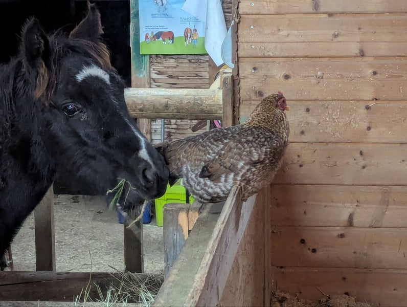 *War schon reserviert, die Käuferin meldet sich nicht mehr deshalb nochmal neu* Absolut Platz vor Preis, ich habe mit Absicht eine etwas höhere Summe angesetzt damit klar ist er wird nicht verschachert* Wir verkaufen unseren Rocky, geboren 17.6.25 Mama ist eine tolle Quater Haflinger Stute die bei uns in der Pädagogik eingesetzt wird. Papa ist ein großer Tinker. Rocky und seine Mama kamen vom Gardasee zu uns als er ein paar Wochen alt war. Rocky ist ein lustiger Frechdachs mit Flausen im Kopf. Er spielt sehr gerne mit unseren Shetty Jungs, die älteren Damen lässt er (meistens) brav in Ruhe. Er lebt in einer kleinen Herde im Offenstall. Er kennt Hufe kratzen und das Führen üben wir gerade. Bei Ausritten geht er frei mit seiner Mama mit oder bleibt auch schon super mit den anderen im Stall. Er kennt Kinder jeden Alters, Hunde,Hühner, Fahrzeuge, laufen bei Dunkelheit,... Er ist absolut unerschrocken, neugierig und dabei menschenbezogen. Er braucht klare Ansagen und natürlich weiterhin eine gute Ausbildung dann wird er ein perfekter Partner. Er ist jetzt schon fast 120cm groß wird also sicherlich größer als seine Mama mit 140cm Bei ehrlichem Interesse freuen wir uns über Kontakt und einen Besuch bei uns. Rocky kann Ende des Jahres ausziehen.
