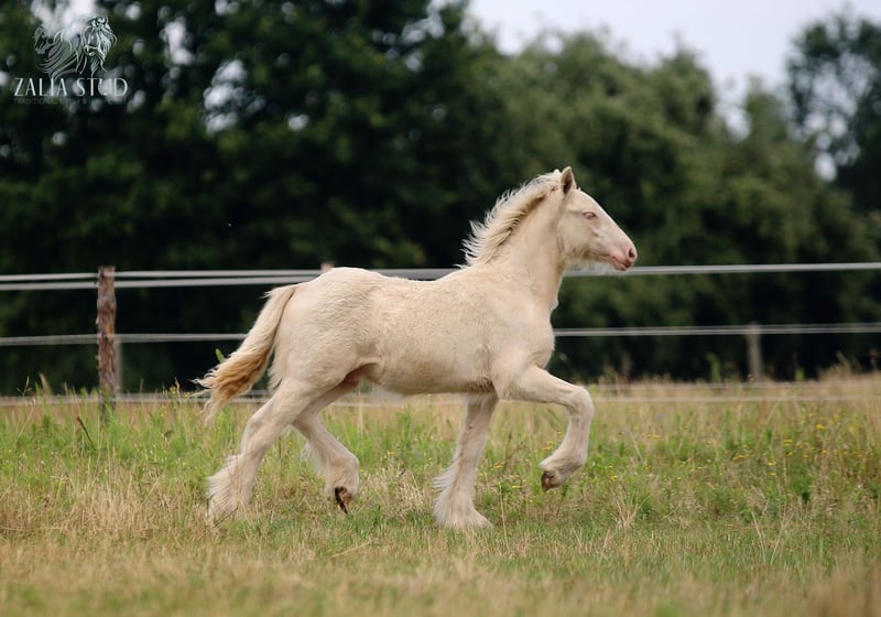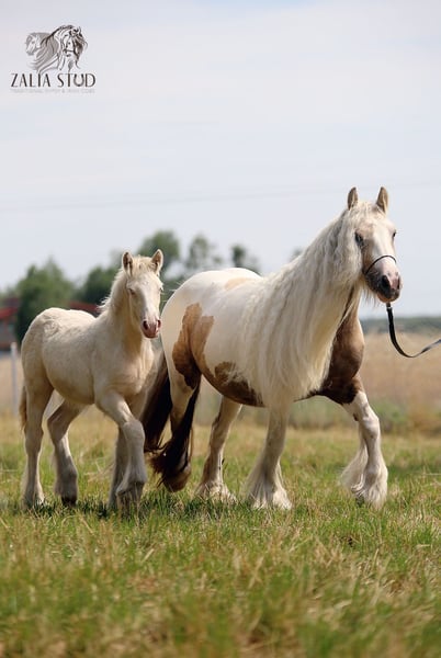 For sale amazing hight quality colt. >ASLAN ZALIA> *Perlino tobiano colt *DOUBLE CREAM GENE, color genetics (Ee, Aa, CrCr, nT) *THIS BOY IS LIKE A PAINTING / ABSOLUTELY TOP CLASS *PSSM1 NEGATIVE/ COLOUR TESTED *FULL TOP PEDIGREE/BREEDING RECORDED, registered ICS NL *Sire and Dam pictures attached Located in Poland/Europe Transport anywhere can be arranged https://www.facebook.com/ZaliaStudGypsyCob WhatsApp: +48692773434 www.zaliastud.com