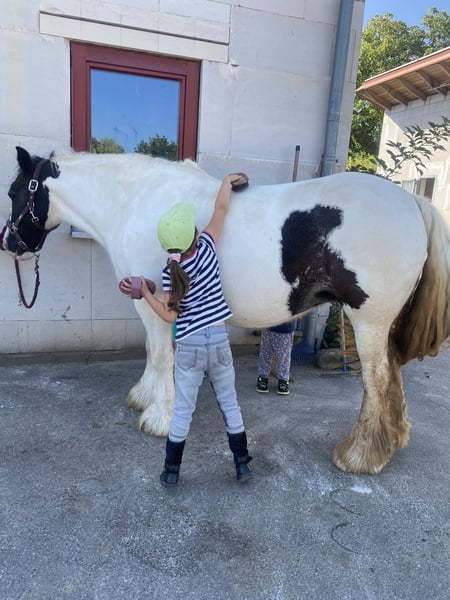 Zum Verkauf steht eine Bildhübsche Tinker Stute. Sie ist 12 Jahre alt und 142 cm groß. Sie ist ein Traum von Pferd, für jeden der ein absolutes Verlasspferd sucht. Peppi ist gelassen, unschreckhaft, aufgeschlossen und sehr kuschelbedürftig. Sie ist ein ausgebildetes Reitpferd, das für Anfänger und auch Fortgeschrittene Reiter geeignet ist. Egal ob Dressurarbeit, Bodenarbeit, Longieren, Ausritte gemütlich oder auch mal flotter, Peppi ist für alles bereit und zeigt sich stets arbeitswillig und macht einfach Spaß. Selbstverständlich ist sie regelmäßig geimpft, entwurmt und kommt sehr gut Barhuf zurecht. Sie ist kerngesund , nur an den Vorderbeinen hat sie leichte Raspe, was bei guter Pflege nicht stört. Peppi ist rangnierig, sie steht mit anderen Stuten zusammen in unseren Offenstall. Peppi möchte nicht in einer Box leben, sie genießt das Leben in der Herde und unter freiem Himmel, was wir uns für das neue Zuhause auch für sie wünschen. Peppi war nun 5 Jahre als Kinderpony im Ponyclub bei uns und zeigt uns, dass sie das nun nicht mehr leisten möchte. Peppi ist kein Gewichtsträger. Und nicht für den Schulbetrieb und Therapie geeignet. Wir wünschen uns einen liebevollen Menschen der es schätzt ein so tolles Pferd zu haben und gemeinsam Zeit verbringen möchte. Sie wird mit Zubehör abgegeben, ein Probereiten ist möglich, allerdings bei nur ernsthaften Interesse und nach vorheriger genauerer Absprache. Nähere Informationen gerne persönlich bei Heike Prescher. Standort Kaltensondheim Preis 8500 Euro VB / Platz vor Preis!