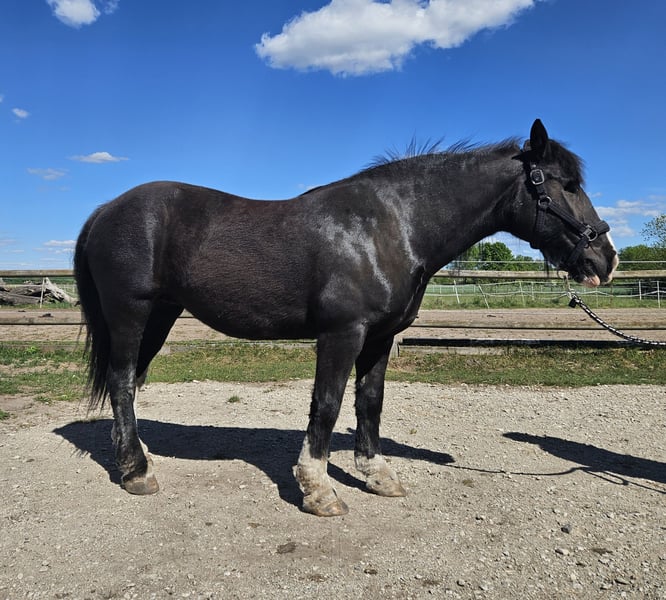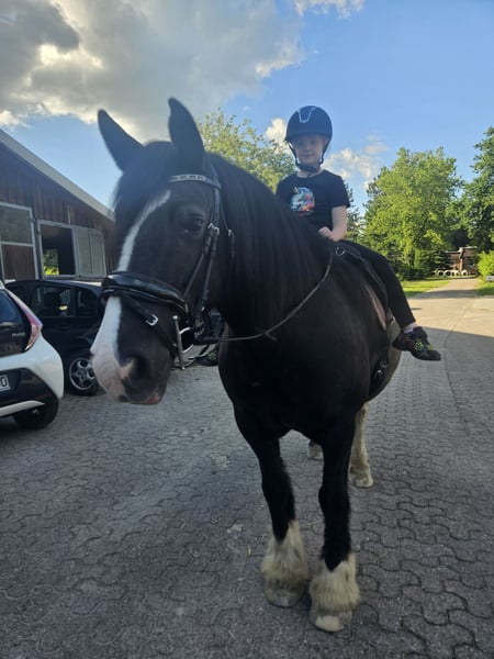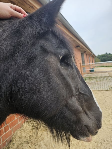 Czasami życie potoczy się inaczej, niż pierwotnie planowano, i trzeba podjąć decyzję. Poszukuję nowego domu dla mojej 13-letniej, około 1,45 m wysokiej klaczy tinkerskiej "Kinga". Typ tinkerski, nieco uparta, ale nigdy poważnie złośliwa. Jeździłam na niej rekreacyjnie, obecnie nie ma siodła, ponieważ wolę jeździć z podkładką. Na zewnątrz jest nieco czujna i dość napięta, dlatego zawsze wychodziłam z nią na spacer w towarzystwie co najmniej jednej osoby. Jest uległa, ale chciałam jej oszczędzić stresu. W stadzie jest bardzo nisko w hierarchii i unika konfliktów. Bez problemu integrowała się w nowych stajniach. Najlepiej czuje się na padoku, nie polecam jej trzymania w boksie, ponieważ wtedy chodzi w kółko, aż ją "uwolnię". Zna traktory, dzieci, kury, psy, koty i inne zwierzęta gospodarskie. Bez problemu można ją załadować i rozładować. Jest świetna u kowala, choć nie podnosi sama tylnej nogi, więc wymaga trochę siły przy jej podnoszeniu. Z charakteru jest spokojna i powściągliwa, ale od czasu do czasu potrzebuje stanowczej, ale pełnej miłości ręki, szczególnie po dłuższym postoju. Uwielbia być czyszczona i pielęgnowana. Charakterystyczną cechą Kingi jest to, że ma tylko jedno oko. Prawe oko zostało całkowicie usunięte, ale nigdy nie miała z tym problemów z oczodołem. Dobrze sobie z tym radzi i nauczyła się polegać na innych zmysłach. Jak wspomniałam wyżej, podczas jazdy solo jest trochę niepewna. Nie wiem, dlaczego usunięto jej oko. Kiedy kupiłam ją w 2019 roku, oczodół był już "pusty" i całkowicie zagojony. Sprzedawca nie mógł podać przyczyny. To nie jest sprzedaż pilna, zależy mi na pełnej szczerości i przejrzystości. Cena do negocjacji, jeśli wszystko będzie odpowiednie. Kinga ma typowe dla rasy problemy, takie jak CPL i Raspe. To wymaga dużo opieki i należy to mieć na uwadze. Im mniej błota, tym lepiej. Ponadto najlepiej, aby nie była cały czas na pastwisku, ponieważ jej metabolizm na to źle reaguje i szybko tyje. Szukałabym osoby z doświadczeniem w pracy z tinkerskimi końmi. Proszę, nie kontaktować się w sprawie, jeśli nie jest się poważnie zainteresowanym. Hodowcy, początkujący jeźdźcy i ośrodki szkoleniowe – nie, dziękuję! Idealnie sprawdziłaby się jako koń terapeutyczny lub do zaprzęgu dwukonnego, gdzie nie chodzi o jazdę. Chcę, aby była kochana za swoje usposobienie, a nie kończyła jako trofeum. Lokalizacja: Büchten Proszę o wiadomości wyłącznie w przypadku poważnego zainteresowania.