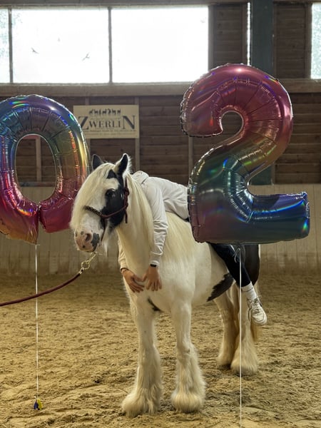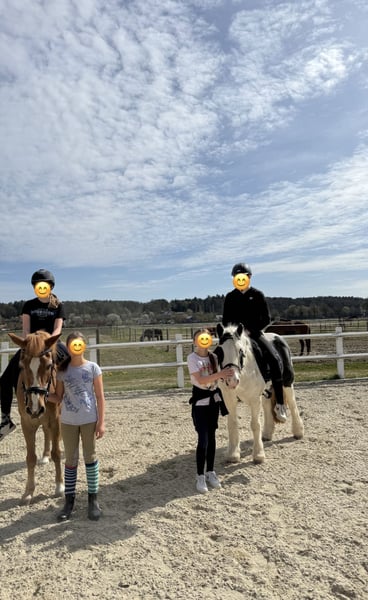 **Sales Advertisement: Tinker Mare** For sale is our charming Tinker mare! - Breed: Tinker - Gender: Mare - Year of Birth: 2009 - Color: Piebald - Height: 130 cm - Use: Leisure, Breeding, Children's Pony Our mare is a true leisure pony and is excellent for relaxed walks and guided rides as well as various activities in the field. She has a gentle nature and is thus perfectly suited for both young and old. The mare is well-trained, easy to handle, and has a friendly character. She loves attention and is always ready to experience new adventures. If you are interested or have any further questions, we look forward to your message! **Location: 8283 **Contact: 06649129444 We look forward to your inquiry!