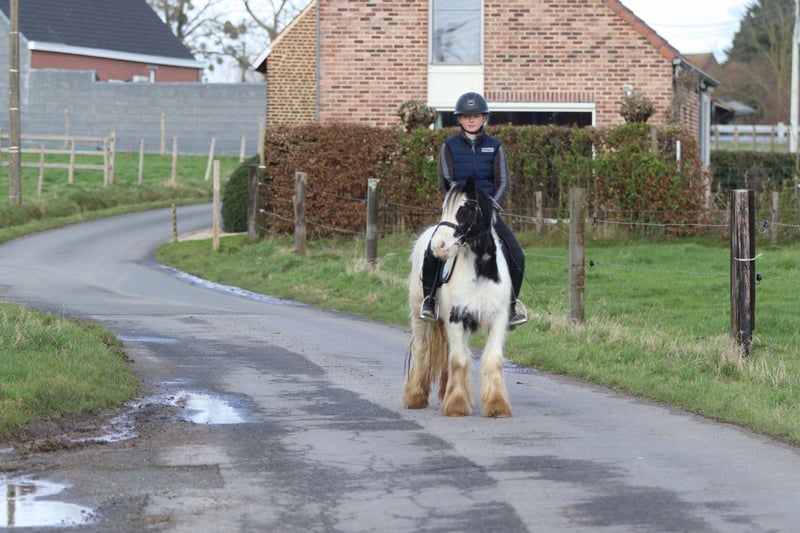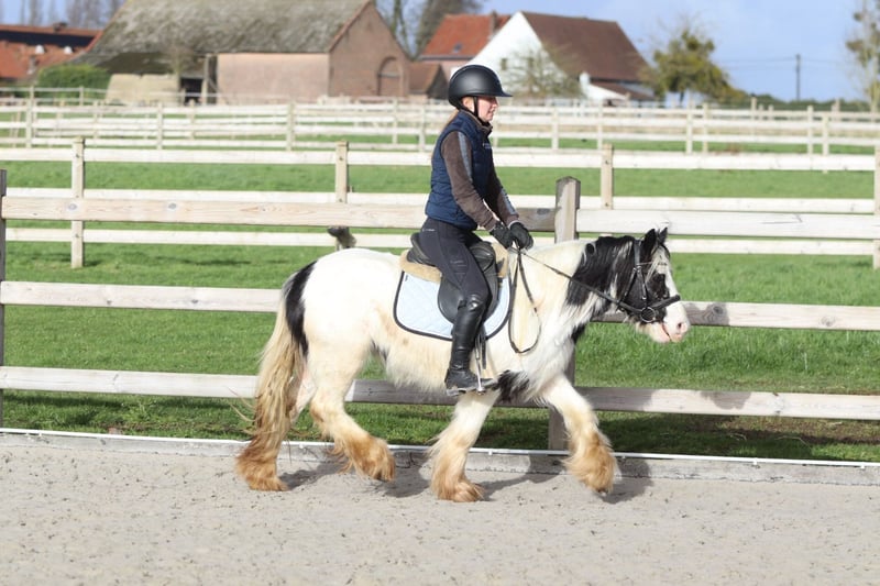 ✨ Petit poney Tinker Elizie ✨ Elizie est une jolie jument de 4 ans avec une taille au garrot de 1,22 m. Elle est douce en société et s’entend très bien avec d’autres poneys. Elle voyage également facilement et sans souci. En dressage, elle maîtrise parfaitement les trois allures, et elle aime aussi participer à des sorties en extérieur. En ville ou face à de nouvelles choses, elle ne se laisse pas facilement impressionner, ce qui fait d’elle un poney agréable et fiable. 📞 Plus d’informations ? 0032475682243 🎥 Pour des vidéos : demandez notre site internet