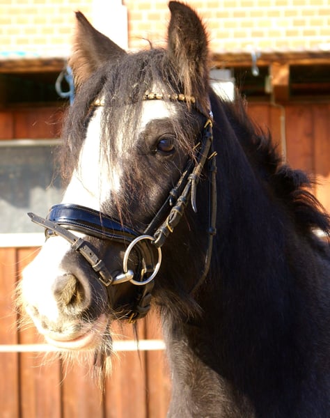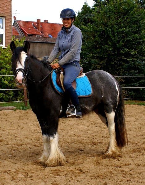 Knuffige black blagdon Tinkerstute, auffällige Optik mit schönem Exterieur, brav angeritten, hat Freude an Freispringen und springt auch mit toller Art, kennt Hunde und Traktoren, gibt brav Hufe, keine Rehe oder Mauke, artig im Umgang und unter dem Sattel
