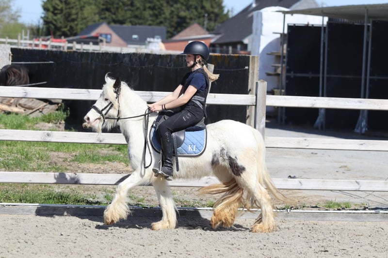 🌸🐴 Tinker poney Molly, adorable et au caractère doux ! 🐴🌸 Faites la connaissance de Molly 💕 Une Tinker poney très spéciale avec un magnifique œil bleu en forme de maanoog 😍✨ ✨ 5 ans ✨ Jument ✨ Environ 1,22 m Molly est bien dressée en dressage classique 🐎 Elle aime aussi sauter et se montre très à l’aise en balade en extérieur, seule ou en groupe 🌳🐴 Elle a une tête extrêmement mignonne 🥰 Elle s’entend très bien avec d’autres poneys 🐴💛 Et… elle peut rester des heures immobile pour se faire chouchouter et laver 🧼🪮💖 En résumé : une véritable petite chérie et une ponette câline ! 🧸🐴 📞 Plus d’infos ? WhatsApp ou téléphone : 0032475682243 🎥 Pour des vidéos : demandez notre site internet