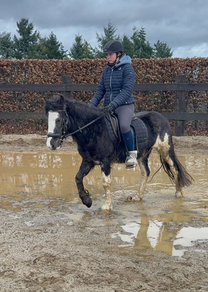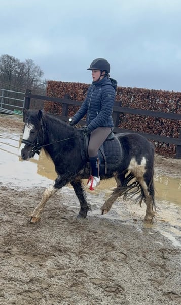 Zum Verkauf steht eine 6 Jahre alte, etwa 128cm große Tinker Mix Ponystute. Sie ist etwa sportlicher als ein reiner Tinker und arbeitet sehr gut unter dem Sattel mit. Sie zeigt keine Unarten und geht brav alle Gangarten auf dem Reitplatz. Sie springt auch gerne und schafft im Freispringen locker 60cm. Im Gelände war sie auch schon und zeigt sich bisher cool und gelassen. Auch im Umgang ist sie absolut lieb und umgänglich. Sie lebt in der gemischten Gruppe im Offenstall und ist sehr verträglich. Krankheiten oder Allergien sind nicht bekannt. Eine AKU darf gerne gemacht werden. Für das Probereiten, Vorreiten oder anderes Ausprobieren des Pferdes berechnen wir 35€. Beim Kauf wird dies gutgeschrieben. Gerne anrufen oder eine Nachricht senden 0157 36803742 Alle Angaben ohne Gewähr, Preisänderungen vorbehalten, Transport möglich, Onlinekauf möglich