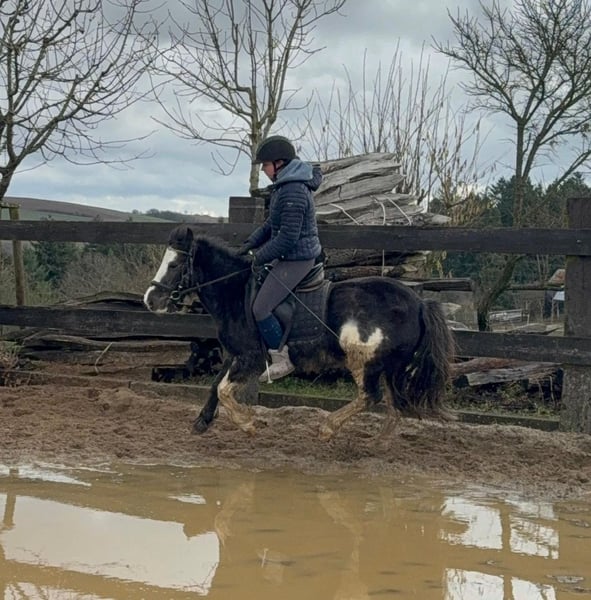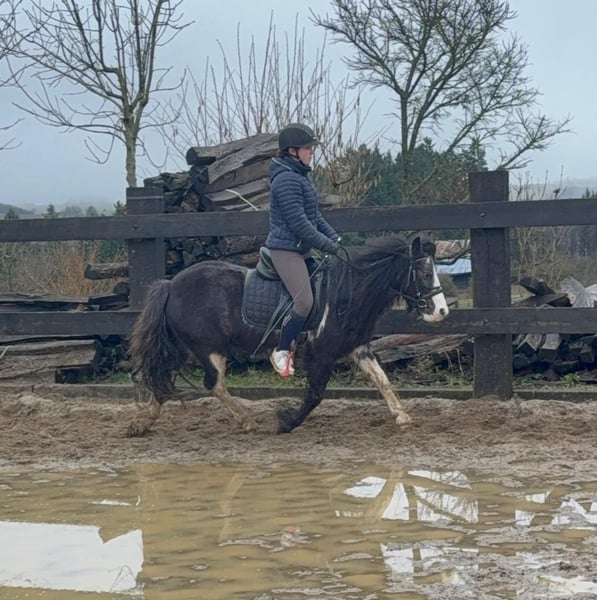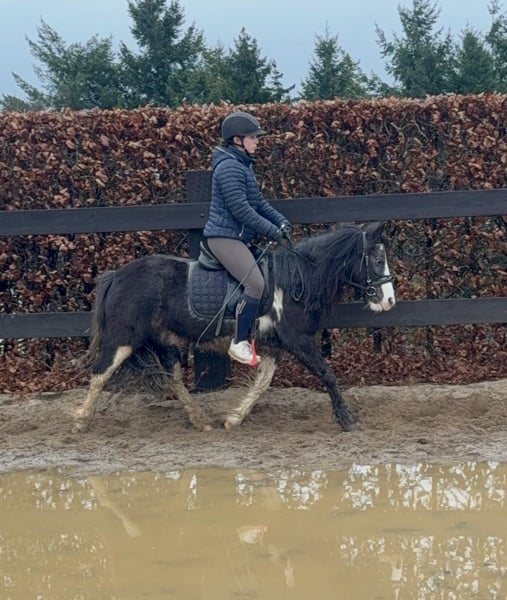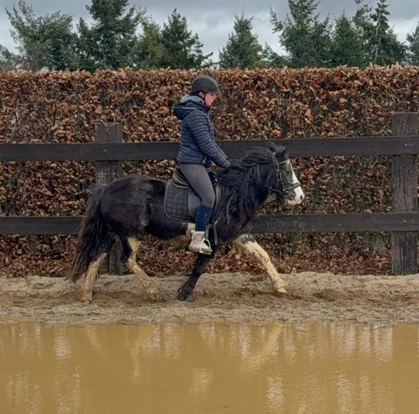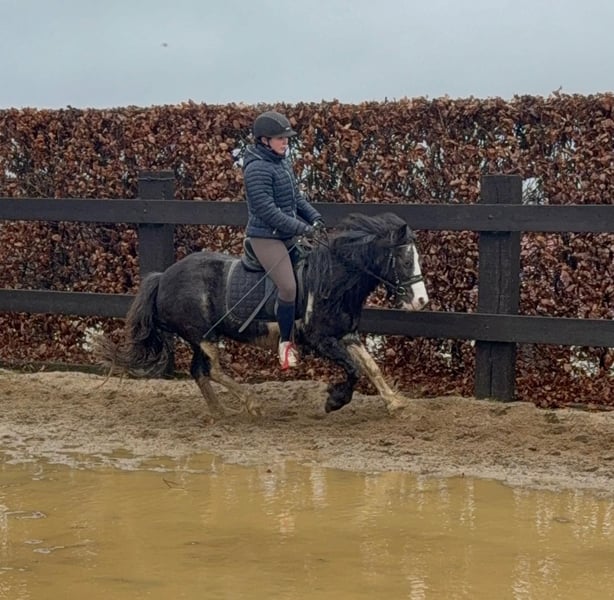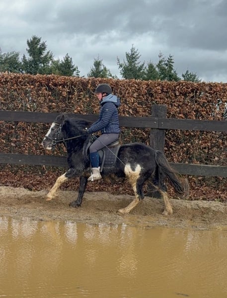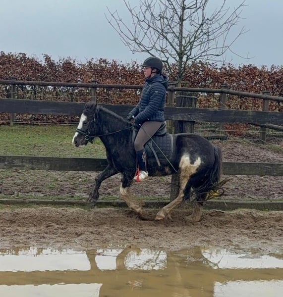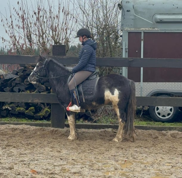For sale is a 6-year-old, approximately 128 cm tall Tinker mix pony mare. She is somewhat more spirited than a purebred Tinker and works very well under saddle. She shows no undesirable behaviors and calmly performs all gaits on the riding arena. She also enjoys jumping and easily clears 60 cm in free jumping. She has been ridden in the field and remains calm and relaxed. In handling, she is absolutely sweet and easy to deal with. She lives in a mixed herd in an open stable and is very sociable. No known illnesses or allergies. An ultrasound examination (AKU) can be performed upon request. A trial ride, pre-ride, or other testing of the horse costs €35. This amount will be credited towards the purchase price. Please call or send a message to 0157 36803742. All information is provided without guarantee; subject to price changes. Transport is possible, online purchase available.
