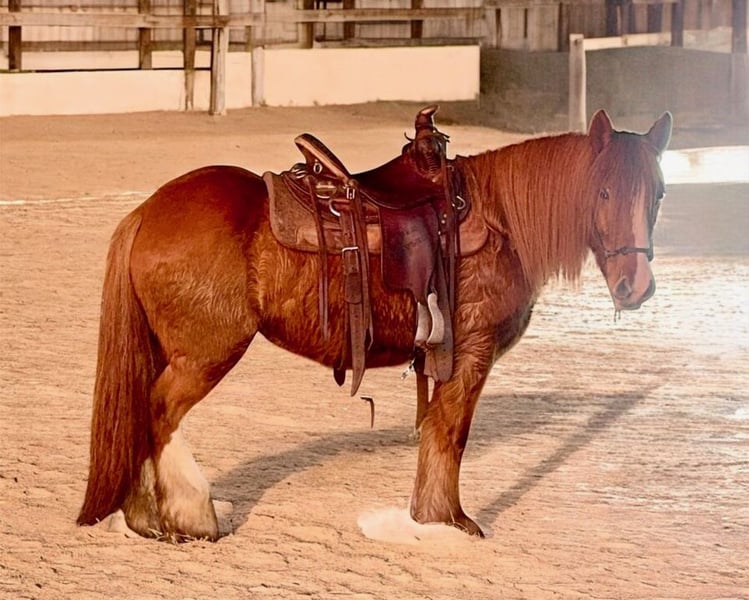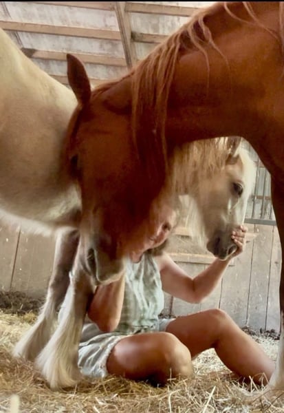 "AVAILABLE ON ONLINE HORSE AUCTION AT www.MagicHorseAuction.com BIDDING OPEN NOW thru TUESDAY | JANUARY 20TH! BUY IT NOW AVAILABLE! *Final price will be determined on auction site* CONSIGNOR CONTACT INFO: Debbie Thorsen #314-368-4000 LOCATION: DeSoto, MO 63020" "Peaches is a tender-hearted 13.2 hand 5 year old red-headed Gypsy, with a wealth of hidden color genetics. She carries red of course, but also silver, agouti and pearl. ee nZ Aa nPrl nn. Peaches has had a rough start in life, if you want her story, you can message me privately. She has given us this gorgeous silver buckskin filly, but she is not being presented as a brood mare. (She came to us pregnant) Our hopes are to see her be someone's heart horse, as she is longing for that connection with a human. However she has been a great mom, unbelievably gentle and doting on her baby. She has had three weeks training under saddle, but is still very green. She's back in training now, first week of January 2026, where she will stay for a few months, unless I find someone for her who wants to do the training or handle the training themselves. Peaches carries one genetic marker of pssm1, which is not consequential in the Gypsy breed. She requires no special diet and has no symptoms whatsoever. This marker can adversely affect stock horses (Quarter horses) but generally has no effects on the Gypsy horse. I've personally had several with the marker, but never once did any of them have an issue. Peaches is out of Bellissima Farms Applejacks , by Bellissima Farms Rugged Cross. ~~~CONSIGNER SPECIAL ADDITIVE~ her purchase could include a breeding to my registered gypsy stallion before she gets picked up, or anytime down the road and we do ship fresh or frozen, as well as live cover. The breeding would be guaranteed to produce a buckskin or a Palomino. ~~ PHOTO OF STALLION ATTACHED "