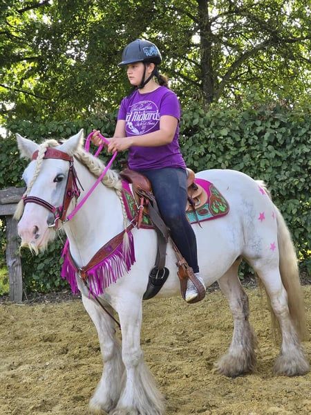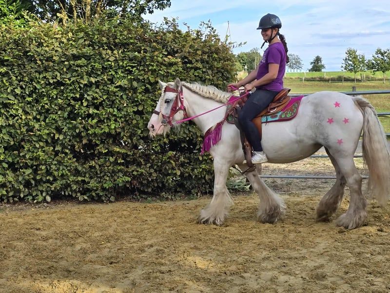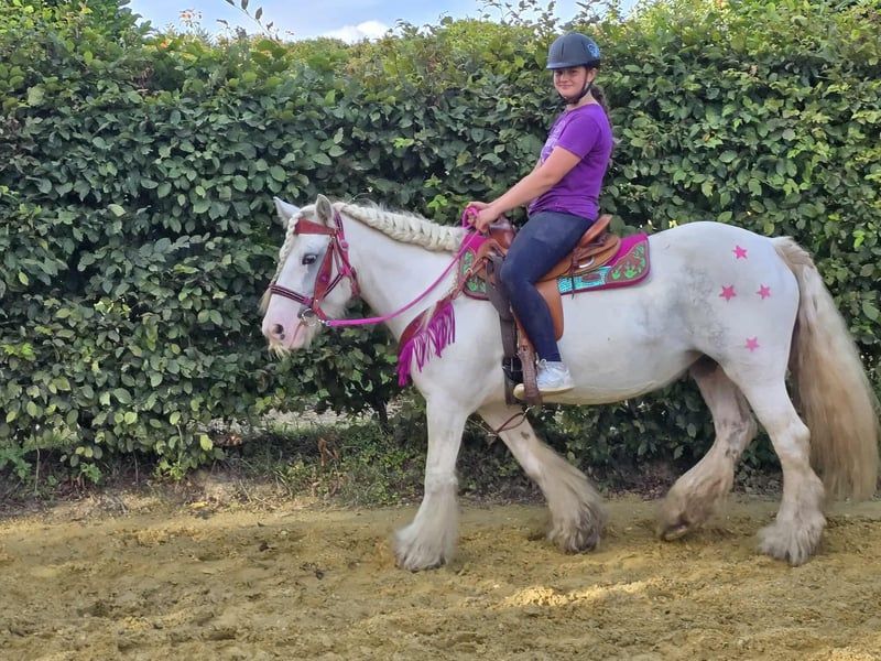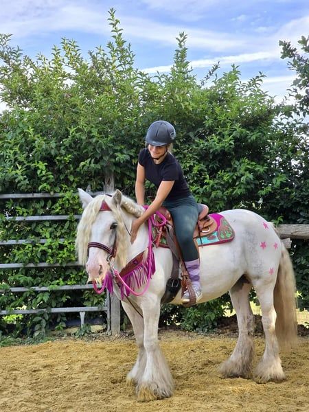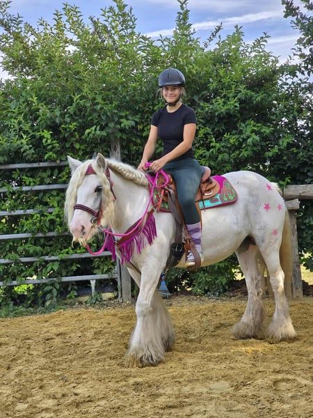 Tinker-Stute „Dosy“ – liebenswerte Freizeitpartnerin mit langer Traummähne Eine Tinker Maus die super rittig ist und auch ein Mutter -Kind -Pferdi sein könnte . Alter: 7 Jahre Stockmaß: ca. 1,42 m Preis: 5600.- AKU: vorhanden ✨ Über Dosy: Unsere hübsche Dosy verzaubert jeden mit ihrer sanften Art und ihrer wunderschönen, langen Mähne. Sie ist brav im Umgang, unkompliziert beim Reiten und zeigt sich stets freundlich und ausgeglichen. Durch ihr liebes Wesen ist sie ein treuer Partner für schöne Ausritte und entspannte Stunden im Gelände. Perfekt für: Reiter, die eine verlässliche Stute mit Charme, Ausstrahlung und einem echten Hingucker-Faktor suchen. Unsere Pferde: – regelmäßig entwurmt – vom Schmied & Osteopathen betreut Hofladen: Westernsättel, Trensen, Zubehör Transport & Zubehör auf Wunsch günstig organisiert Unser Service: ✅ 3 Monate Umtauschrecht ✅ Proberitt: 35 €, jedes weitere Pferd 25 € (beim Kauf am selben Tag angerechnet) ✅ 100 € Sofort-Rabatt bei Abholung/Transport am selben Tag ✅ Persönliche & ehrliche Beratung Anfragen bitte nur telefonisch: 0171 – 4001968 Täglich erreichbar von 8–20 Uhr