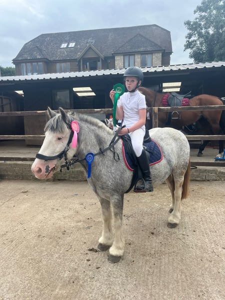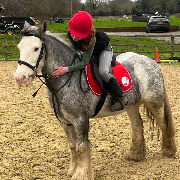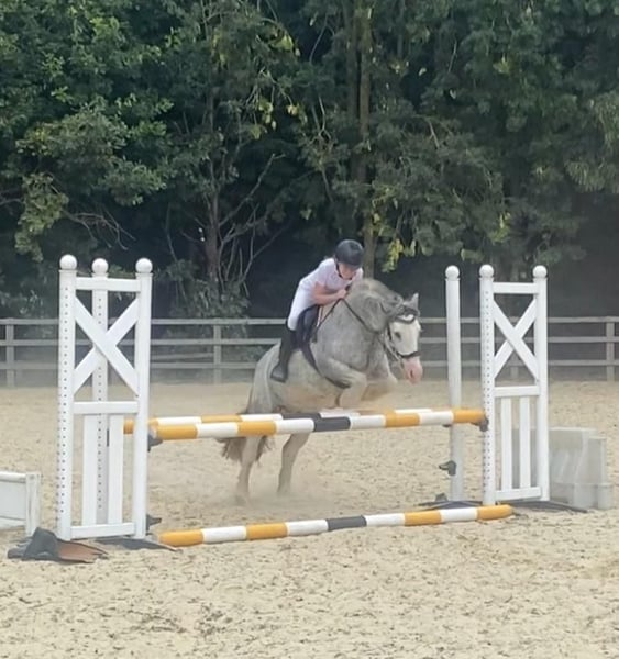Elsa 7 years 13.1 hh Mare blue blagdon, gypsy mini vanner This pony has been a saint, this is a very sad sale, she is so good in all ways. She has had many different levels of rider and looks after every single one. Ridden by novice children from age 8-14, novice adults max 10st up to 5’3 and experienced riders. She can step it up a gear or go for a quiet plod. She is a nice forward ride without being silly On the ground she is an angel, easy to catch, load, change rugs, groom, shoe, bath, tie. Tack up and go. She will stand for hours to be groomed or at a show and go to sleep until her class. Loads with no trouble at all. Is a real sweetie, to handle leads nicely and has good manners. You can plait her, clip her do vaults and round the worlds and is not spooky at all. She can stress if left alone in a field but has turned out alone and does settle . In the school She loves to jump has jumped 80/90 and gives her all. Loves jumping at home and will do grid work and chase me Charlie’s, she regularly jumps 60/ 70 with ease. Good transitions and breaks, doesn’t buck rear or bolt. If you take a fall she will wait with you. She can be strong on a turn when jumping bigger heights, but is just a bit of schooling she needs, if you rely on your leg and open your hand she never misses. Walk trot and canter and would easily do pony club. Hack Brilliant to hack in company, not spooky, will tackle bridges, bins, bikes, buses, Lorrie’s, canter in open fields without fizzing up and getting strong, walk over cattle grids, do gates and water. She needs a forward thinking rider to hack alone, or she will turn about, but just circling she will turn back easily enough, never says no, never nasty a really nice natured pony. My children have lost interest and I was keeping her on for a loaner who has now moved on to bigger horses. Would be perfect for RDA or pony club, or any novice coming off riding school horses. She’s well built and bare foot, ridden in a Waterford as she can grab the bit but hasn’t done it since using this bit, she’s also got a sensitive mouth so no need to hang off her, never took a lame day in the 2 years I’ve had her. Too perfect to waste in my field, and should be loved and enjoyed by some little person or adult. Comes with fitted tack and rugs Up to date with teeth and vaccinations Microchipped and passported