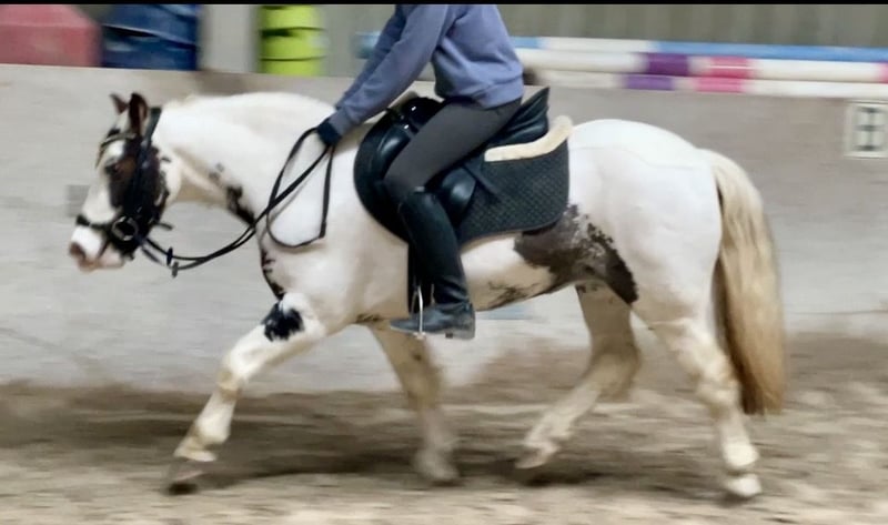 9-jährige Tinker-Scheckstute, ca. 1,35 m, mit sehr gutem Charakter. Brav, zuverlässig und menschenbezogen – auch von (Klein-) Kindern geritten. Sicher in allen drei Grundgangarten, geländesicher auch alleine. Verlade- und schmiedefromm, kennt Bodenarbeit, gebisslos & ohne Sattel reitbar. Tierärztlich durchgecheckt, kerngesund, Zähne frisch gemacht. Vielseitig einsetzbar für Freizeit, Familie oder ambitionierte Ponyreiter. Preis: 5.800 € VB | Standort: Würzburg