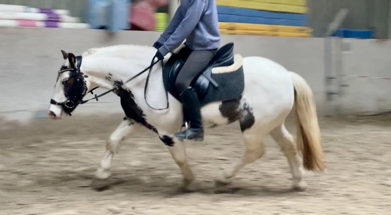 Zum Verkauf steht eine 2017 geborene, ca. 135 cm große Tinker-Scheckstute mit sehr gutem Charakter und absolut unkompliziertem Wesen. Sie ist brav, ehrlich und menschenbezogen und macht im täglichen Umgang alles geduldig mit. Auch von Kindern gut händelbar. Unter dem Sattel zeigt sie sich zuverlässig und gelassen in allen Grundgangarten. Besonders viel Freude bereitet sie beim Springen (E-Niveau), hier zeigt sie Vermögen und Spaß, ist dabei aber stets kontrollierbar. Sie ist geländesicher, kennt Bodenarbeit, Longenarbeit und ist auch gebisslos reitbar. ✔️ verlade- & schmiedefromm ✔️ barhuf, ekzemfrei ✔️ gesund, fit und korrekt ✔️ kennt Kinder ✔️ Equidenpass vorhanden Ideal geeignet für: Familie, Kinder, Jugendliche, Freizeitreiter oder als verlässliches Allroundpony. 📍 Standort: Würzburg 💶 Preis: 8.900 € – gut verhandelbar bei zügiger Abwicklung Bitte geben Sie bei Ihrer Anfrage eine Telefonnummer an.