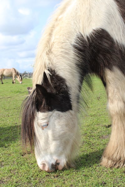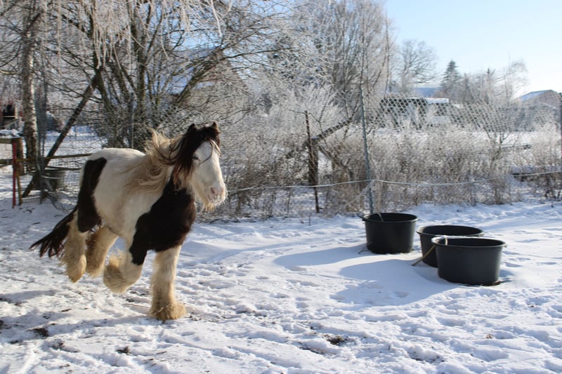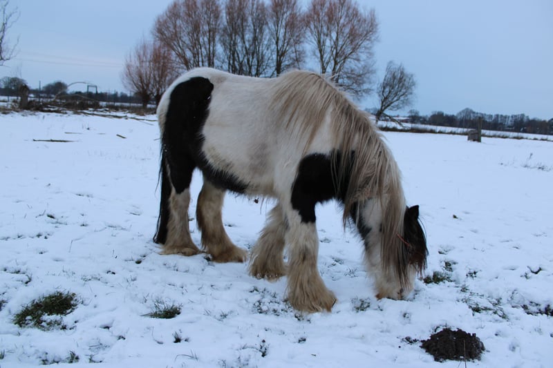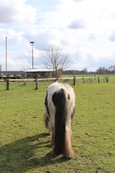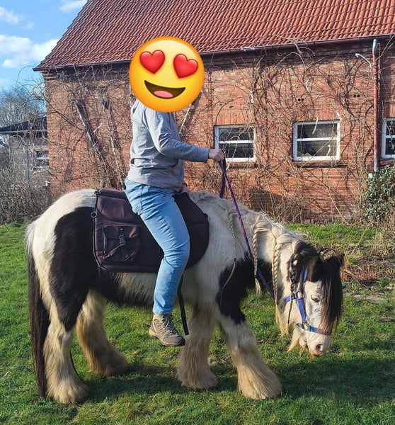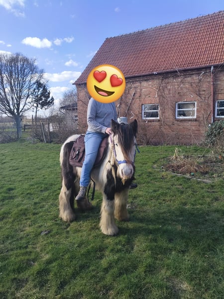 With a heavy heart, we are selling our George. Little Prince "George" has been with us since he was about six months old. He was born in England and came to us via a Dutch horse market. Here, he grew up with a peer stallion, older geldings, and mares of all sizes. Since foalhood, he has never had any bad experiences and has never been ill. He is kept at the house in an open stable with a paddock, and in summer, he grazes on a wooded pasture in a herd. He is also familiar with box stall housing (from very cold winter periods and holidays). Three years ago, George was backed at Reiners Riding Stable and was used by children for trail riding with a saddle. He is very well-behaved with children and in handling, but since then, he has only been kept as a companion on the pasture here, as he was originally intended for our own training. He has been on holiday, swimming in lakes, used as a lead pony for rides, and even accompanied us to the ice cream shop... He loves to roll in shallow water, scratch himself, or take a bath. He is a dream pony. He has always been cheerful, friendly, and gentle here, and is easy to handle for the farrier and loading. He is also fence-safe (even on the move, in the paddock with low electric fencing). His calm demeanor provides security and makes him suitable for children or therapeutic riding. Due to my daughter's studies and some health issues of our own, we unfortunately have to give up our entire horsekeeping, which is why we have decided to sell him. Throughout the years, he has never been sick or lame. He has no history of colic, unexplained lameness, founder, or eczema. His coat was once completely shaved due to autumn mite infestation. Otherwise, he has had no issues with his thick mane, tail, or leg hair. His charming little mustache in winter and his beautiful eyes are especially notable. We are looking for a permanent, loving home for this heart horse. We also have a small pony cart and a set of light harness available, which can be purchased if interested. (Pre-purchase examination available upon request and at the buyer’s expense. Due to his training level, trial riding is not possible.) The sale is due to giving up horsekeeping. Details: Breed: Tinker Gelding Approx. 1.28 m (13.2 hh) Born November 2016 – still 9 years old Thick leg hair Long mane and tail Blue eyes Pass available – no pedigree Backed three years ago for trail riding and on the arena – needs re-education The pictured Norwegian and the piebald Shetland are also looking for a home and are listed separately. For more information, additional pictures, videos, etc., please contact 0157-55791316.