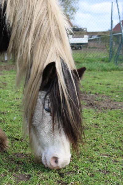 Met pijn in het hart verkopen wij onze George. De kleine prins "George" is bij ons sinds hij ongeveer een half jaar oud was. Hij is geboren in Engeland en via een Nederlandse paardenmarkt bij ons gekomen. Hier is hij opgegroeid met een hengst van dezelfde leeftijd, oudere ruin en merries in alle maten. Sinds hij veulen is, heeft hij nog nooit een slechte ervaring gehad en is hij nooit ziek geweest. Hij staat bij ons thuis in een open stal met paddock, in de zomer op de beboste weide in een kudde. Boxstalling kent hij ook (van zeer koude winterperiodes en vakantie). George is drie jaar geleden op de manege Reiners aangezad en door kinderen bereden in het terrein met zadel. Hij is absoluut braaf met kinderen en in omgang, maar stond daarna alleen nog bij ons op de wei als bijzetter, omdat hij eigenlijk voor onszelf gereden zou worden. Hij is mee op vakantie geweest, heeft gebaad aan het meer, dient als handpaard bij buitenritten of ging soms mee naar de ijssalon... Hij houdt ervan om zich in ondiep water te rollen, te scharrelen of te baden. Hij is een droompony. Altijd vrolijk, vriendelijk en lief geweest, braaf bij de smid en bij het inladen, ook veilig met hekwerken (zelfs onderweg en in de paddock met weinig stroom). Door zijn rustige manier van omgaan geeft hij vertrouwen en is hij waarschijnlijk ook geschikt voor kinderen of therapie. Door de studie van onze dochter en eigen gezondheidsproblemen moeten wij helaas stoppen met de paardenhouderij, daarom hebben wij besloten hem te verkopen. In al die jaren is hij nooit ziek of kreupel geweest. Koliek, onbekende kreupelheden, hoefbevangenheid of eczeem, etc., zijn hem onbekend. Bij herfstgrasluizen is zijn manen- en staartbehang wel eens volledig verwijderd. Verder heeft hij geen problemen gehad met zijn dichte manen, staart en benen. Apart is zijn lichte snorbaard in de winter en zijn prachtige ogen. Voor dit hartendier zoeken wij een blijvend, liefdevol thuis. We hebben nog een kleine ponywagen en een eerste licht tuig klaarstaan, die bij interesse mee gekocht kunnen worden. (Een aankoopkeuring op kosten en verzoek van geïnteresseerden mogelijk op het erf. Proefritten niet mogelijk vanwege de huidige trainingstoestand.) De verkoop is vanwege het stoppen met de paardenhouderij. Kenmerken: Ras: Tinker Ruin Ongeveer 1,28 m hoog Geboren in november 2016 – nog 9 jaar oud Dikke benenbehang Lange manen en staart Blauwe ogen Paspoort aanwezig – zonder afstamming Drie jaar geleden in het terrein en op de piste aangezad – moet opnieuw worden aangezet De afgebeelde Noorse pony en de bont Shetlander zoeken ook een nieuw thuis en staan ook te koop. Voor meer informatie, foto's, video's, etc., neem contact op via 0157-55791316.