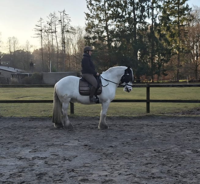TE KOOP: grote sportieve tinker, zeer mooie verschijning! Gaat weg wegens tijdgebrek. Vriendelijk en betrouwbaar karakter, maar niet geschikt voor de onzekere ruiter. Geschikt voor de ruiter met ambities in de dressuur, maar ook geschikt voor de recreatieve ruiter. - ruin; - 14 jaar; - stokmaat 1,60 mtr; - zeer mooi van bouw; - soepel in zijn lijf; - zeer bereidwillig; - in het verleden oefeningen uit de M gereden (dressuur), niet uitgebracht op wedstrijden - betrouwbaar op buitenritten zowel in groep als zelfstandig; - geen stalgebreken; - verkeers en trailermak; - altijd geeënt en ontwormt; - staat geregistreerd in het Nederlandse stamboek tinkers; - liefst staat hij 24/7 buiten; Handelaren en maneges hoeven niet te reageren, goed huis is erg belangrijk. Filmmateriaal op verzoek.