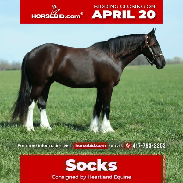 ⚜️𝐭𝐡𝐞 𝓔𝓵𝓲𝓽𝓮 𝐒𝐩𝐫𝐢𝐧𝐠 𝐂𝐥𝐚𝐬𝐬𝐢𝐜⚜️ Happening now thru MONDAY | APRIL 20th - Available EXCLUSIVELY on HorseBid's website! For more details and to register visit: www.Horsebid.com CONSIGNOR CONTACT: Heartland Equine 417-793-2253 LOCATION: Mt Vernon, MO BREED: Gypsy cross REGISTERED: No REGISTERED NAME: Socks COLOR: Black HEIGHT: 14 AGE: 4 GENDER: Gelding This is a nice young gelding, broke & ready to be your next riding (or driving) partner! “Socks” is a 4 year old 14 hand Gypsy/pony cross gelding. If his shiny jet black coat & crisp white socks don’t catch your attention - his training will! This is a horse the whole family can enjoy. This guy has a true one hand neck rein, he is fancy with lots of buttons & cool moves. He is soft, supple and rides very correct. Nice, smooth lope & big stop. you will appreciate all the buttons he has to offer. He is gentle, safe and easy to get along with. Socks rides both English and western, you can even ride him bridleless! We have exposed Sock to all sorts of farm equipment, he is eager to bravely conquer obstacles that would rattle most horses. He loves going for trail rides or plopping around the arena. Nothing phases this guy! Any level rider can enjoy taking Socks for a spin. Socks has graduated from our program and we are proud to stand behind such an outstanding young gelding. It’s rare to find such a classy gelding that not only rides, but drives as well! Socks is super easy to drive, stands quietly to be hitched/unhitched & will wait patiently for folks to load/unload from the buggy. 100% traffic safe, take him for your next grocery run! No bad habits or funny business. Socks loves attention & is such a gentle guy, he is very respectful. Socks is an absolute gentleman for the farrier, stands to be saddled/mounted & bridled. Socks is sound, sane & ready to move into your barn!