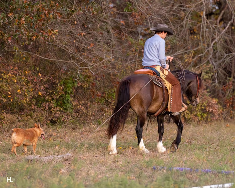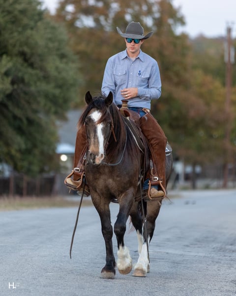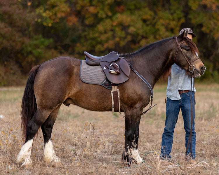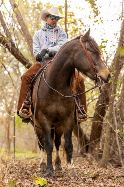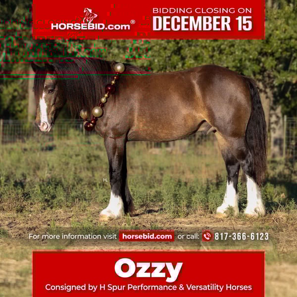 🎄𝐓𝐇𝐄 𝑯𝒐𝒍𝒊𝒅𝒂𝒚 𝐂𝐋𝐀𝐒𝐒𝐈𝐂🎄 Happening now thru MONDAY | DECEMBER 15th - Available EXCLUSIVELY on HorseBid's website! For more details and to register visit: www.Horsebid.com CONSIGNOR CONTACT: H Spur Performance & Versatility Horses 817-366-6123 LOCATION: Weatherford, TX BREED: Gypsy Cross REGISTERED: No COLOR: Buckskin HEIGHT: 14.3 AGE: 4 GENDER: Gelding Ozzy is a 4yr old, 14.3hh, sooty buckskin Gypsy cross gelding with the kind of presence that grabs your attention from the start. If his good looks don’t get ya hooked, his personality and rideability definitely will. From the arena to the trails, this gelding has you covered and would be an exceptional prospect to show in all ranch versatility classes or under english tack. Ozzy has been ridden through state parks, used on overnight camping trips, and used for basic ranch work making circles and gathering. He’s traveled through multiple trail courses and handled every obstacle with ease — water, bridges, logs, brush, teeter totters, you name it. He also handles new environments confidently, taking everything in stride. Ozzy goes through water easily and is steady around activity and commotion. We have shot firearms around him and he handled it extremely well, never getting bothered or reactive. He also handles vehicle traffic well and makes a gorgeous flag horse, carrying himself with confidence and style. In the arena, Ozzy is a fun and fancy ride. He has a light handle, bridles up well, is started on flying lead changes, and will absolutely drag his hind end when asked to stop. He’s been used as a turnback horse in the cutting pen as well and will really cow up to one. Ozzy has also been ridden English and took to it like a duck to water, showing just how versatile he wants to be. Ozzy is very fluid and smooth in all gaits, making him a comfortable and enjoyable horse to ride for long stretches. If rideability is just as important as personality to you, he'll surely win you over on the ground too. Ozzy has a super sweet personality — he loves his scratches, loves to give kisses, and truly enjoys being around people. He absolutely adores kids and is patient and kind with them. He’s great with pesky dogs and other farm animals/livestock, and he loads, unloads, and hauls like a pro. Ozzy is easy to get along with on the ground for all. He has always been a gentleman for grooming, stands tied or ground ties to be saddled, and takes a bit easily. He can be lead, as well as loaded onto the trailer by our 4yr old son with no issues no matter where we are. Ozzy can go barefoot with no issues and has been barefoot with us, but currently has a full set on as personal preference for sale horses. If you’re looking for a young gelding with standout looks, a kind personality, and a solid, honest foundation ready to finish your way, Ozzy is your guy. He is completely sound with no blemishes of any kind, has no history of sickness or injury, and is ready to go in whichever direction you point him. As everyone is aware, the EHV outbreak in Texas has slightly thrown a wrench into the normal dealings. Our main transporters have paused hauls, but we will be offering free board until transport can be arranged from our place in Weatherford, TX to a buyer’s home. Our facility has been free of any potential outside exposure since early October. Please visit our Facebook page, H Spur Performance & Versatility Horses, to see all updates and information pertaining to such. Ozzy will sell with a temperature log to ease potential buyers minds as well and is UTD on all routine care. To view Ozzy’s full picture and video gallery, you can visit his page on our website at www.hspurhorses.com/ozzy. All horses are sold with a current coggins, our bill of sale (which can be e-signed at the conclusion of the sale), and an Additional Information Sheet outlining all routine care dates, their normal diet, and other helpful information so they can step seamlessly into their new routine at their new home! For any questions and to talk about if Ozzy is right for you, don’t hesitate to give Sarah a call at 817-366-6123.