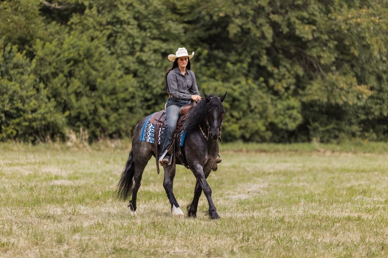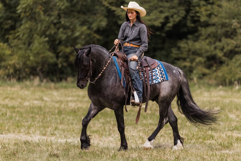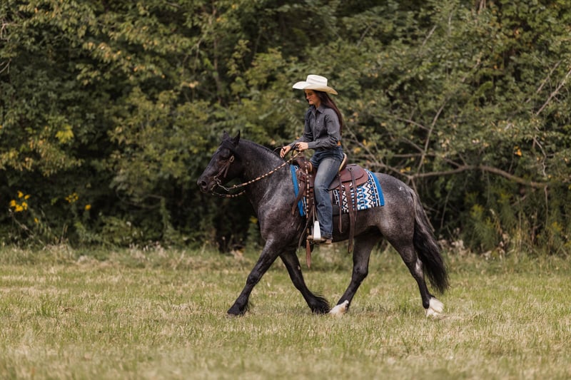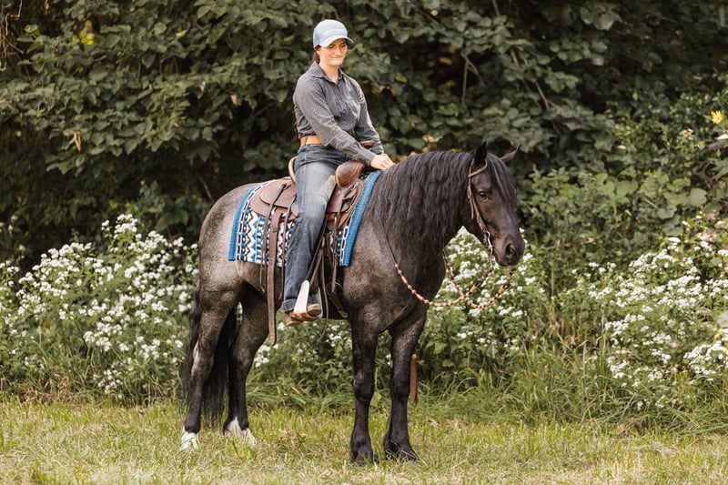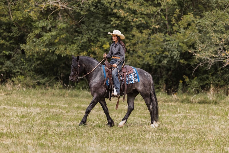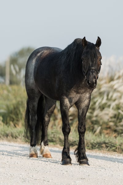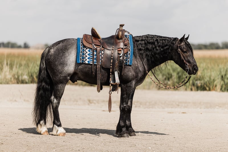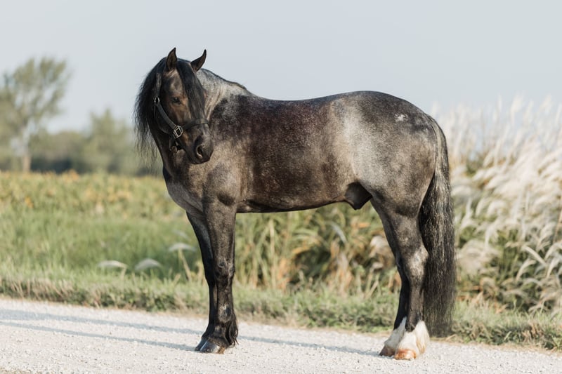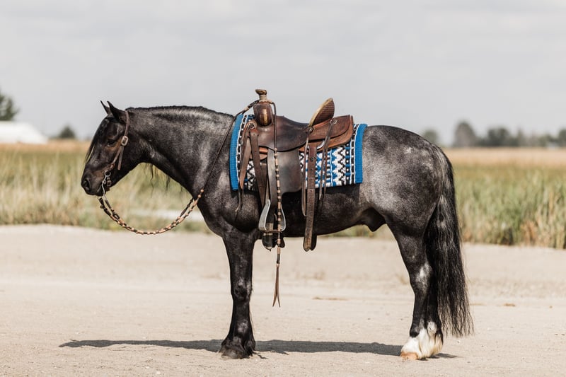 🍁𝒕𝒉𝒆 𝐅𝐀𝐋𝐋 𝑺𝒑𝒆𝒄𝒕𝒂𝒄𝒖𝒍𝒂𝒓🍁 Happening now thru MONDAY | SEPTEMBER 22nd - Available EXCLUSIVELY on HorseBid's website! For more details and to register visit: www.Horsebid.com CONSIGNOR CONTACT: Helmuth Equine 515-460-9191 LOCATION: Ames, IA BREED: Gypsy X Welsh REGISTERED: No COLOR: Blue Roan HEIGHT: 14.1 AGE: 5 GENDER: Gelding Azul is a 5 year old blue roan gelding who stands at 14.1 hh. He is a Gypsy X Welsh. Azul is very versatile and could go in any direction. He rides very well western, lopes circles on a loose rein, works nicely in an arena, and can also be collected up and ridden English, including dressage. He will safely carry anyone from a little kid to a grandma on a trail ride, and you can count on him being 100% safe. Azul also drives extremely well and is soft in the bridle. He would make an excellent pleasure driving horse or combined driving horse. He is quiet and safe enough for a complete beginner to drive, yet fancy enough to move up through the combined driving levels. He has been to town many times and is completely traffic safe. He drives both in a pair and single. He is a true sweetheart with the absolute best manners in and around the barn. Azul stands nicely to mount and to hitch up, and he walks off perfectly. He has excellent conformation with zero vices and does not require any special maintenance. If you’ve had a lifelong dream of owning a blue roan gentleman, Azul will be that and so much more!