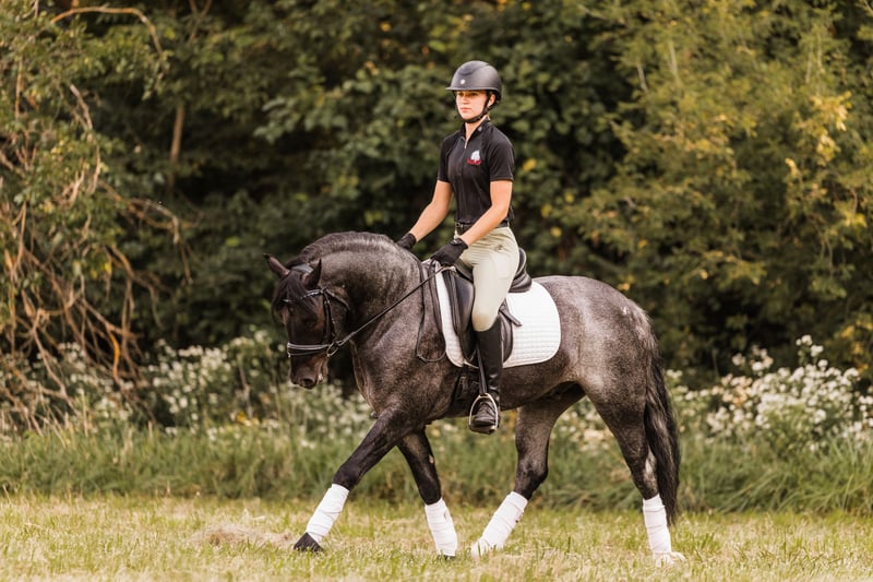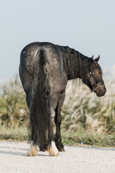 🍁DER HERBSTLICHE SPEKTAKEL🍁 läuft jetzt bis MONTAG, 22. SEPTEMBER – exklusiv auf der Website von HorseBid! Für weitere Informationen und zur Anmeldung besuchen Sie bitte: www.Horsebid.com VERKÄUFERKONTAKT: Helmuth Equine, 0151-5460-9191 STANDORT: Ames, Iowa RASSE: Gypsy X Welsh ANGEMELDET: Nein FARBE: Blue Roan GRÖSSE: 14,1 hh ALTER: 5 Jahre Geschlecht: Wallach Azul ist ein 5-jähriger Blue Roan Wallach mit einer Größe von 14,1 hh. Er ist ein Gypsy X Welsh. Azul ist äußerst vielseitig und kann in verschiedene Disziplinen eingesetzt werden. Er reitet sehr gut western, läuft in lockeren Zügen im Kreis, arbeitet angenehm im Roundpen und kann auch aufgesattelt und englisch geritten werden, inklusive Dressur. Er trägt problemlos jeden – vom kleinen Kind bis zur Oma – bei einem Trailritt, und Sie können sich auf seine absolute Sicherheit verlassen. Azul fährt auch hervorragend und ist im Maul sehr weich. Er eignet sich ideal als Freizeit- oder Vielseitigkeitswagenpferd. Er ist ruhig und zuverlässig genug für absolute Anfänger, die ihn fahren möchten, aber auch elegant genug, um in den Vielseitigkeitsprüfungen aufzusteigen. Er war schon mehrfach in der Stadt unterwegs und ist absolut verkehrssicher. Er fährt sowohl in der Kutsche als auch einzeln. Er ist ein echtes Herzstück mit vorbildlichem Benehmen im Stall und rund um das Pferd. Azul lässt sich gut auf- und absatteln und geht perfekt voran. Er besitzt eine ausgezeichnete Konformation, keine schlechten Angewohnheiten und benötigt keine spezielle Pflege. Wenn Sie schon immer davon geträumt haben, einen Blue Roan Gentleman zu besitzen, wird Azul dieser Traum wahr machen – und noch viel mehr!