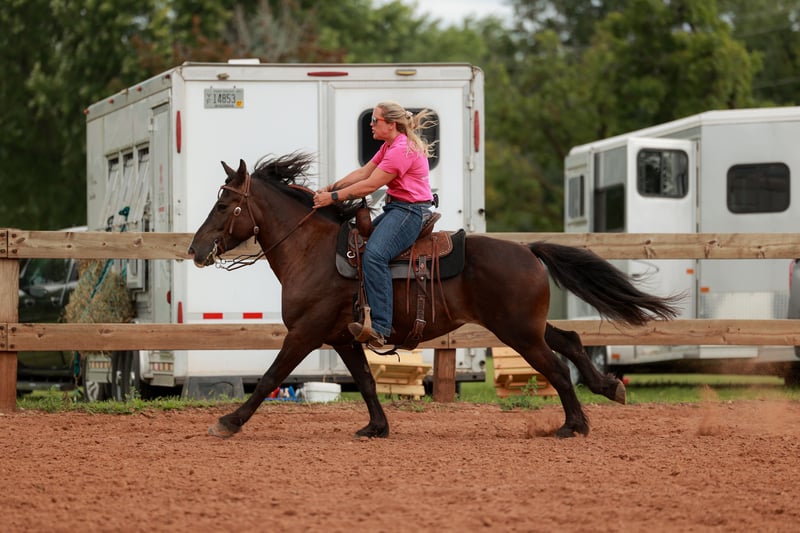 ⚜️ 𝓽𝓱𝓮 𝐇𝐨𝐫𝐬𝐞𝐦𝐚𝐧'𝐬 𝓢𝓱𝓸𝔀𝓬𝓪𝓼𝓮⚜️ Happening now thru MONDAY | DECEMBER 1st - Available EXCLUSIVELY on HorseBid's website! For more details and to register visit: www.Horsebid.com CONSIGNOR CONTACT: AJ Acres 920-251-5127 LOCATION: Pickett, WI BREED: Gypsy Cross REGISTERED: No REGISTERED NAME: AJA Black Shadowy Knight COLOR: Bay HEIGHT: 14.1 AGE: 5 GENDER: Gelding Shadow rides and drives; he is a horse that excels at whichever task you give him and aims to please. He is lovingly adored by his youth and adult riders, and enjoys attention from all humans. Shadow dominates in the show ring with his eye-catching movement. He has been successfully shown by youth and adults in hand, western, English, saddleseat, over cross rails, and speed events - placing competitively in each discipline! Not only does he prove himself with his show performance, Shadow has the sound and sane mind to take you safely down the trails. He has been hauled all over to multiple state parks, racked on tons of trail miles, crosses water and bridges, follows or leads. He’s used to dogs running around him during schooling and is not bothered by traffic. He has been stalled for weekend shows and stands well for bathing/banding/grooming. He has been ridden in our local 4th of July parade and loved all the attention! He’ll pick you up at the mounting block, greet you at the gate, and be happy to clock in to work for the day. Shadow knows voice commands (driving) and is attentive to leg, hand, and seat commands under saddle. He has beautiful gaits, knows his leads, pivots nicely, and has a great stop. He would excel in dressage, but could go any direction his next partner wants to go and will put forth the effort to do it successfully. Shadow truly is a special horse who will make someone a fantastic partner. We’re going to be sad to see this one go! Ties, loads, hauls, bathes, clips, etc. UTD all cares (chiro, worm, teeth, feet, vacc). Front shoes for show season. Will have current health certificate/PPE. Located Pickett, Wi. Hauling available.