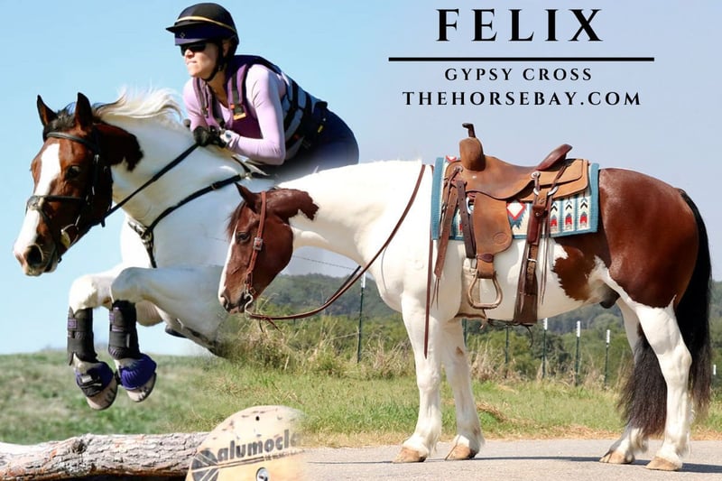 Felix checks all the boxes: gentle, safe, and easy on the eyes! Felix is a handsome 7-year-old bay and white paint crossbred gelding. He stands right at 15 hands. You won’t find another one like him – this gelding is the real deal and safe for the entire family. Felix is what dreams are made of. He is a gentleman both under saddle and on the ground. Felix has a nice lope and moves through his gaits with ease. Moves off leg pressure, stays light in your hands, and soft in the face. Picks up his leads, collects up, and has all the buttons you could ever need! He has a fancy handle, a really fun gelding to ride We have done everything with Felix. He loves a good trail ride and has even been to town. Felix has been shown in low-level eventing; he is a fantastic English horse and enjoys going over jumps. With his laid-back and gentle demeanor, he would make an excellent lesson horse or 4-H project. Felix is reliable, safe, and trustworthy. If you’re looking for your next best friend, Felix is your guy. He is respectfully in your pocket, loves attention, and is to be groomed. Stands quietly to be saddled and mounted. He is good for the farrier. Loads, ties, and hauls like a dream. Up to date on routine maintenance and in great health. Felix is ready to be your new favorite riding buddy!