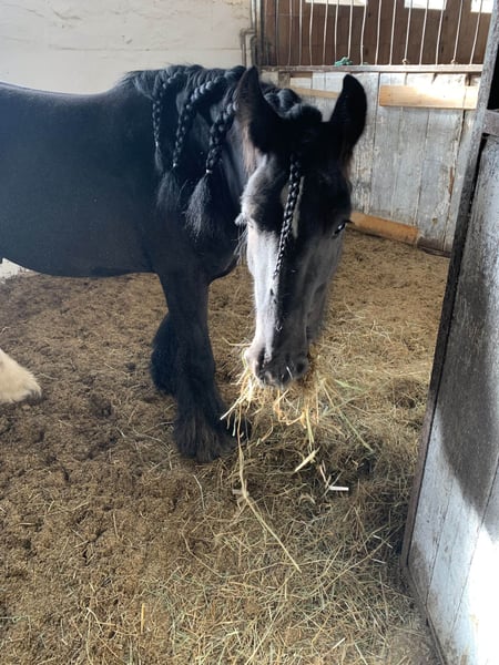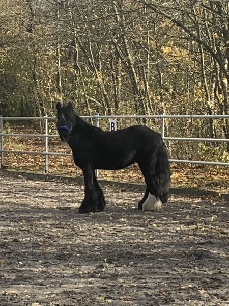 Hugin to 8-letni, chętny do pracy i o silnym charakterze wałach Tinker. Został osiodłany dopiero w wieku 5 lat, aby dać mu czas na wzrost. Jego żywe tempo podstawowe i energiczne ruchy sprawiają, że jazda na nim to przyjemność, jednak czyni go to nieodpowiednim dla dzieci i początkujących. Hugin szybko się uczy i pragnie być rozwijany. W terenie nic go szybko nie wytrąca z równowagi, a w codziennym kontakcie panuje relaksująca atmosfera. U Hugin zdiagnozowano lekką formę CPL, która przy odpowiedniej uwadze podczas karmienia i pielęgnacji nie wpływa na jego kondycję. Szukamy dla niego miejsca u osoby z sercem i zrozumieniem dla koni, jego akcesoria mogą być częściowo nabyte razem z nim. Aby zapobiec turystyce jeździeckiej, pobieramy opłatę w wysokości 30 € za próbę jazdy, która oczywiście zostanie odliczona od ceny zakupu. W przypadku poważnego zainteresowania prosimy o kontakt wyłącznie telefoniczny, a nie przez wiadomości WhatsApp. +49 (0)15125174420