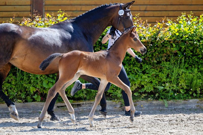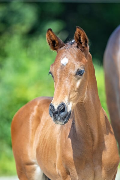 Attention eventing riders! This stunning young son of the renowned thoroughbred Armand xx is a true gem. His generous, well-set neck and the already noticeable future saddle position promise excellent prospects for suitability as a riding horse. The trot flows smoothly through the body and is characterized by good basic mechanics. The canter is outstanding, expansive, and uphill. The walk is rhythmical with good reach. A foal with a very good perspective for eventing. The sire is the quality thoroughbred stallion Armand xx. He comes from one of the best thoroughbred families in Germany, which has its roots at the Schlenderhan stud. This family has produced the legendary sire Galileo xx, among others. Armand himself spent 4 years on the racetrack, earning approximately €80,000 with 6 wins and 10 placements in flat and jumping races. He contributed to warmblood breeding for 15 years and sired the Holsteiner champion mare Elypsa (SLP 9.63) in 2015, as well as numerous successful offspring in sports, including the eventing star Azrael and several of his progeny competing successfully in CCI*** events and higher. The dam of this foal, the Pr.St. Taleya, comes from one of the currently best mare families in Trakehner breeding, which was highlighted again this year at the foal auction with the second most expensive foal. This branch of the family also produced the current champion foals at the shows in Elmarshausen and Herbstein. The dam is highly rated and completed her performance test with a jumping score of 9.5. Her sire, Dramatiker, has established himself as a sire of performance-oriented and athletic horses in show jumping up to class M, alongside his own achievements. The two successful stallions Humanus and Caanitz in the descending maternal line enrich this exclusive sport horse pedigree.