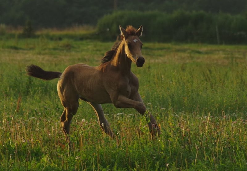 Very special BUCKSKIN TRAKEHNER colt by MILLENNIUM himself. I am quite sure he is the first BUCKSKIN Millennium Trakehner foal, possibly the only buckskin Millennium foal at all- which makes him totally unique. Millennium himself probably needs no introduction. Trakehner stallion of the year 2022 and most successful Trakehner stallion in these days. He has successfully competed Grand Prix level himself and the same time he has already given more than 100 licenced sons- and not only in Trakehner studbook. He also shares the sire (Easy Game) with double Olympic champion TSF Dalera. Dam of the colt is very well graded and extra rare cremello Trakehner mare Elektra KA by thorouhbred stallion Goldmaker xx. Dam´s dam was russian-bred mare by dressage stallion Ekwus, damdamsire is Ashabad- Belorussian national grading winner with top scores both in jumping and movement and later also successful Grand Prix dressage stallion. The damline goes back to mare Ennam who herself directly gave 2 Grand Prix stallions- one of them (Enisey) was also part of Olympic dressage team in Moscow 1980. It is a correct and goodmoving colt with beautiful Trakehner look. He is expected to become a tall horse, the dam is an impressive 177 cm at withers. Espresso Macchiato has wonderful and kind character and is very easy to handle. Do not miss that true rarity. The colt has been weaned, properly handled and is ready to move worldwide. Shipment from Estonia to Germany 700-800 EUR. palominotrakehners@gmail.com
