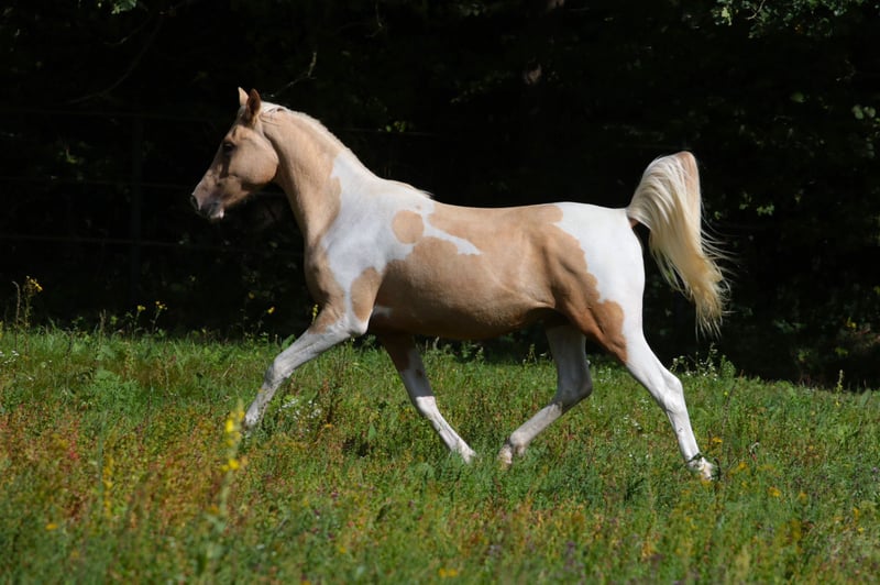 Lupinenhofs Spotify ist ein wahnsinnig selbstbewusster Junghengst. Er ist immer dabei, macht überall mit und muss alles erkunden. Er lernt schnell und lässt sich leicht überzeugen. Er ist absolut angstfrei und neugierig. Optisch ist er ein wahrer Hingucker. Nicht nur seine seltene und besondere Farbe (Palominoschecke, meines Wissens nach der Einzige weltweit), sondern auch seine Präsenz beeindrucken sehr. Er ist immer sofort da, wenn er sich zeigen soll und tut dies auch sehr gerne. Seine Abstammung ist fern vom Mainstream. Er trägt 73% Arabisches Blut, ist zwar dtl. arabisch geprägt, aber kräftig mit stabilem und sehr korrektem Fundament. Sein Großvater ist Camaro. Aufgrund der Abstammung, Qualität und Farbe, wäre er auch sicher interessant für die Zucht. Ich sehe ihn im Distanz- oder Vielseitigkeitsbereich. Er wächst, bei uns, sehr ursprünglich auf. Ihm steht, mit seinem Kumpel, eine Ganzjahresweide zur Verfügung. 24/7 Licht, Luft und Bewegung. Ideal um einen starken Bewegungsapparat zu entwickeln und das Immunsystem zu trainieren. Zum Heu gibt es Mineralienzusätze. Ziel ist ein langlebiges, gesundes und hartes Pferd, kein Showstrampler. Seine Mutter ist Distanzen bis 61km gelaufen. Seine Großmutter bis 90km. Sein Vater ist in der Vielseitigkeit erfolgreich. Spotify durfte lange bei seiner Mutter bleiben und wurde selbsttätig von ihr abgesetzt. Selbstverständlich ist er geimpft, regelmäßig entwurmt und wird, im 6 Wochentakt, dem Hufschmied vorgestellt. Alles in allem die perfekte Basis für ein langes und gesundes Pferdeleben.