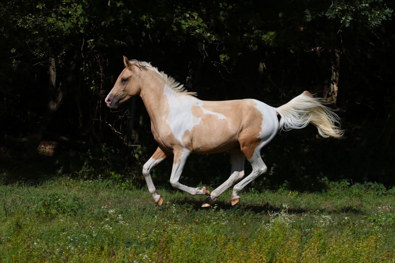 PRISET GÄLLER FÖR KASTRERING UPP TILL SENAST 3 ÅR GAMMAL!!! Lupinenhofs Spotify är en otroligt självsäker liten kille. Han är alltid där, är med överallt och måste utforska allt. Han lär sig snabbt och är lätt att övertyga. Han är absolut orädd och nyfiken. Visuellt är han ett riktigt blickfång. Inte bara hans sällsynta och speciella färg (palomino piebald, såvitt jag vet den enda i världen), utan också hans närvaro är mycket imponerande. Han är alltid där direkt när han ska visa upp sig och gör det mycket gärna. En sann showman. Hans härstamning är långt ifrån den gängse. Han har 73% arabiskt blod, och även om han är av arabiskt ursprung är han stark med en stabil och mycket korrekt grund. Hans farfar är Camaro. På grund av sin stamtavla, kvalitet och färg skulle han verkligen vara intressant för avel. Jag ser honom i uthållighets- eller eventingsektorn. Hans sluthöjd kommer att bli cirka 1,62 meter. Hans mor har sprungit distanser på upp till 61 kilometer. Hans mormor upp till 90 kilometer. Hans far är framgångsrik inom fälttävlan. Video tillgänglig, kan skickas på begäran. Spotify fick stanna länge hos sin mor och avvandes av henne. Han växte upp i en flock och bor i ett öppet stall. Han har 24/7/12 frisk luft, ljus och motion, utfodras med högkvalitativt foder och har alltid tillgång till hö. Självklart är han vaccinerad, regelbundet avmaskad och går till hovslagaren var 6-8:e vecka. Allt som allt en perfekt grund för ett långt och friskt hästliv. Eftersom bra uppfödning kostar pengar ökar priset med åldern.