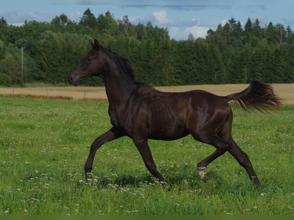 Ein ganz besonderer SMOKEY BLACK TRAKEHNER Junghengst von MILLENNIUM. Ich bin ziemlich sicher, dass er das erste Millennium Trakehnerfohlen mit diesem besonderen Farbgen ist, was ihn absolut einzigartig macht. Smokey Black bedeutet, dass er kein gewöhnlicher Rappe ist, sondern eine Variante des Creme-Gens trägt, er ist ein sogenannter „Palomino Black“. Millennium selbst braucht hier sicher keine Vorstellung, als Trakehner Hengst des Jahres 2022 und derzeit erfolgreichster Trakehner Hengst. Er ist selbst erfolgreich auf Grand Prix-Niveau gestartet und kann gleichzeitig bereits mehr als 100 gekörte Söhne vorweisen – und das nicht nur in der Trakehnerzucht. Er teilt sich auch den Vater (Easy Game) mit der Olympiasiegerstute TSF Dalera. Die Mutter des Hengstes ist die sehr gut bewertete Cremello-Trakehner-Stute Erianthe KA von Goldmaker xx. Die Mutter hat auch den besten jungen Trakehner Hengst national im Jahr 2024 gegeben! Die Großmutter mütterlicherseits wurde in Russland geboren und ist die Enkelin von Homeras, dem Champion der UdSSR. Die Mutterlinie geht auf die Stute Ennam zurück, die selbst zwei Grand Prix-Hengste zur Welt brachte – einer davon (Enisey) war auch Teil des olympischen Dressurteams in Moskau 1980. Das Jungheengst ist sehr ausdrucksstark mit einem hübschen kleinen Kopf; also korrekt gebaut. Steht in Estland, direkt vom Züchter- kann problemlos nach Deutschland gebracht werden. anneli.kadakas@gmail.com https://www.facebook.com/reinu.talu/