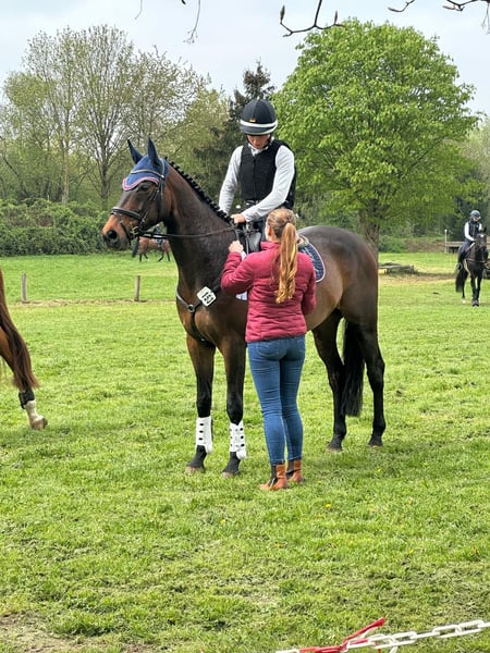 This very interesting half-bred (almost 80% Thoroughbred blood) still has great potential for development. The rider should have experience in show jumping, as they will enjoy working with this young horse and supporting his progress! The gelding has been trained gently and achieved excellent results in eventing competitions last year. Since the winter break, he has been back in training since February. His sire, King Size AA, is one of the most renowned and proven sires in the Anglo-Arabian breeding program in France. In his youth, he competed in dressage and eventing, later focusing solely on show jumping. He has been successful up to CSI3* level and has a jumping index (ISO) of 160. Cestuy la de L'Esques AA, by King Size AA, was placed over 1.60 m in Hickstead (GBR) during the Derby qualification with Stephan Dubsky. KING SIZE AA is the sire of many successful show jumpers and eventing horses. The dam is by the well-known Trakehner half-bred CARUSO NERO from Russia, renowned for his breeding strength in jumping. Location: Warendorf