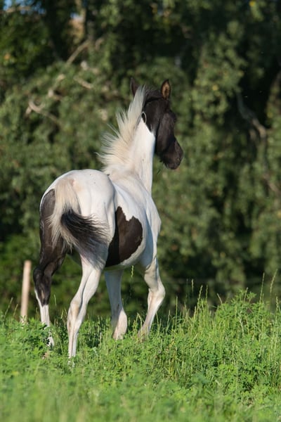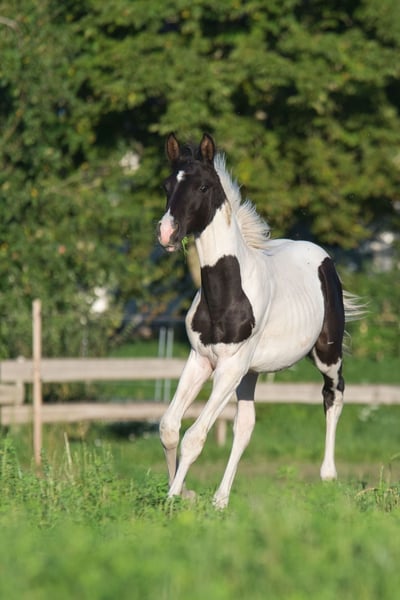 Checkmate – Trakehner Colt (born March 27, 2025) – a genetic rarity with a dream-like character For sale is an exceptional Trakehner colt, born on March 27, 2025. Even at this young age, Checkmate already stands out as a true eye-catcher – not only visually but also in temperament. ✨ Highlights & Pedigree: • Sire: Grenoble • Dam: Schachblume / Camaro • Genetic rarity: inherited 50% as a black-and-white pinto, 50% as a brown-and-white pinto • Comes with full papers until leaving • Vaccinated, of course Character: Checkmate impresses with his calm, friendly, and open-minded nature. He is easy to handle everywhere, loves attention, remains relaxed during grooming, and enjoys human contact. A foal that brings joy every day and already demonstrates a dream-like personality. What makes Checkmate special: • Beautiful, rare coat pattern • Clear, noble Trakehner lines • Promising young stallion with a solid foundation • Perfect for breeding, leisure riding, or simply as a loyal companion Location: Fleischwangen, Breite Äcker 1