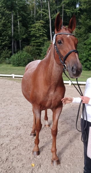 ...mit der 50 % Chance auf Sonderfarbe Roan (Farbwechsler). Warum Sperma - wenn es gleich ein fertiger Embryo sein kann?! Zum Verkauf steht ein Embryo aus der Trakehner Stute Bergkada und dem Vollblüter Leistungsvererber Il Divo xx. Die Stute Bergkada wurde auf der diesjährigen Bundestutenschau in Kranichstein mit dem 1e Preis bedacht. Neben ihrem hervorragenden Pedigree wurde besonders ihr Schritt hervorgehoben: "Jeder Schritt wie der andere, Runde um Runde." Auch im Rahmen ihrer Stuteneintragung konnte sie in den Grundgangarten überzeugen und wurde hier mit den Wertnoten 8, 8, 8 belohnt und auch im Gesamteindruck erhielt sie eine 8. Ihre Abstammung?! Absolut legendär. Namen wie Beg xx, Marduc, Habicht oder Trafaret auf der Hengstseite, sowie die unvergessene Hörsteiner Grande Dame Shynoon zieren ihr Pedigree. Ihre Sonderfarbe Red Roan oder Fuchstichelhaar verdankt sie dem Hengst Bukephalos, der auf den ebenfalls roanfarbenen Insterfeuer zurückgeht. Zur Zeit sind in Deutschland nur zwei Stuten mit diesem seltenen Farbgen zuchtaktiv für die Trakehner. Ein doppeltes Argument: Leistung trifft Farbe! Trotz (oder gerade wegen?) des Leistungsblutes zeigt sich diese Stute absolut unerschrocken und leistungsbereit. Ob Sankt-Martins-Umzug, Kindergeburtstag oder Helikopter-Einsatz auf der Nachbarwiese - dieses Pferd lässt sich durch nichts aus der Ruhe bringen! Das letzte Bild zeigt ihr Trakehner Fohlen aus 2019 von Phlox (Championatsfohlen), das jetzt 6 jährig keine Wünsche als verlässlicher Freizeitpartner offen lässt. Der Vater Il Divo xx, Sohn des Dashing Blade xx, war Reserve-Siegerhengst des „Schaufensters Vollblut“ 2010 in Münster-Handorf. Ein ungmein trockener und großrahmiger Hengst, mit bedeutenden Maßen, viel und korrektem Bein, langen Linien, in klarer Aufteilung seiner Körperpartien. Diese Anpaarung wurde bewusst auch wegen der Schönheit und Noblesse des Hengstes gewählt. Auch seine Exterieur-Points liegen in der Gesamtaufmachung mit komfortablem Schulter-Widerrist-Gürtel und langer, sehr gut angesetzter Halsung, die sich ideal geformt zum Genick hin verjüngt. Il Divo xx ist mit drei hervorragenden, taktsicheren, raumgreifenden und zugleich elastischen Grundgangarten ausstaffiert, die von viel Schulterfreiheit, Vorderbeinaktion gekennzeichnet, immer aus dem aktiven Hinterbein getragen werden. Er kam in drei Rennjahren 15-mal an den Start, davon dreimal siegreich und viermal platziert (GAG 92,5 kg). Eine traumhafte Anpaarung, aus der mehrere Embryonen gewonnen werden konnten. Diese liegen in der renommierten Pferdeklinik Mühlen (Vis á Vis zu Schockemöhle) sicher "auf Eis". Die Spezialisten der Pferdeklinik können die Vorbereitung der Empfängerstute, sowie die erfolgreiche Implantation vor Ort durchführen, Falls keine eigenen geeignete Empfängerstute vorhanden ist, so kann auch bei der Vermittlung geeigneter Empfängertiere seitens der Klinik Hilfestellung geleistet werden. Warum also die Unsicherheit der Besamung in Kauf nehmen - wenn gleich der fertige Embryo mit Traum-Pedigree wartet??!