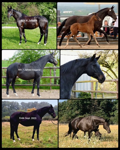 Long-legged premium mare with a lot of presence. - born in 2015 - height 178 cm +/- 1 cm - has had 3 beautiful foals so far - in foal to Havertz (last covering date 26.05.25) - easy to handle - health handicap Further details only upon viewing. Mobile 0171 6261168