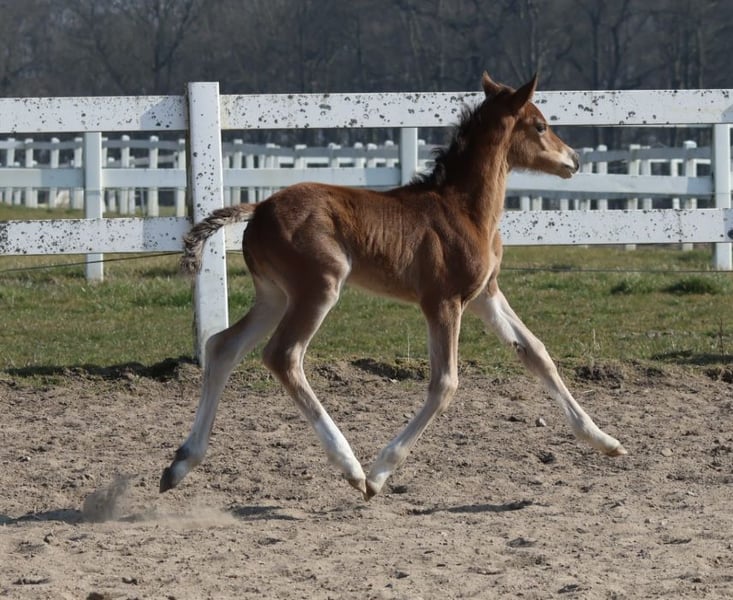 Unser junger Bahrain hat mit seinem ersten Jahrgang auf ganzer Linie überzeugen können mit fast ausschließlich Fohlen in Championatsqualität. So auch diese junge Dame aus der Sport- und leistungsgeprüften PrSt Heartlight. Ein Jungpferd mit sehr angenehmem, noblen Charakter, artig im Umgang. Züchterisch sehr interessant, da Millennium-frei. Herzi kann gern jederzeit nach Absprache angesehen werden und könnte auch noch noch länger bei uns bleiben , wenn gewünscht.