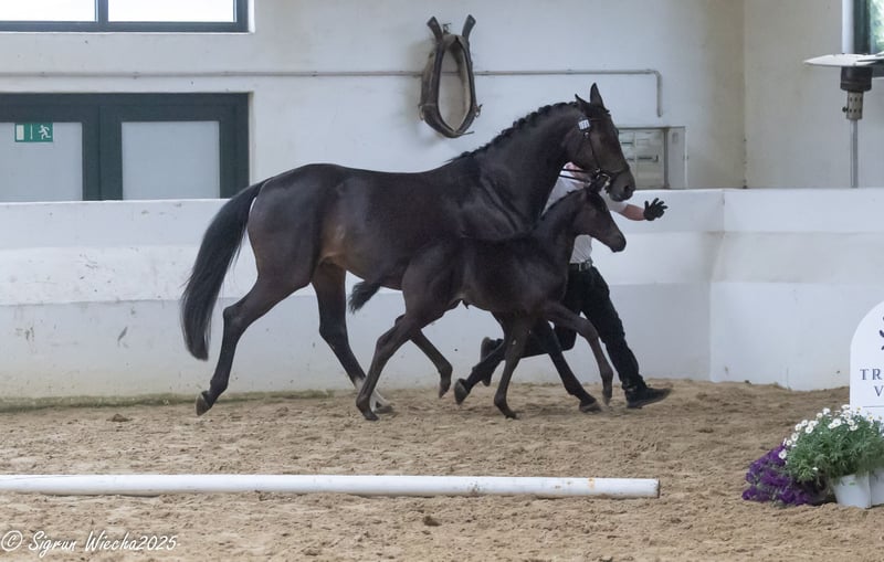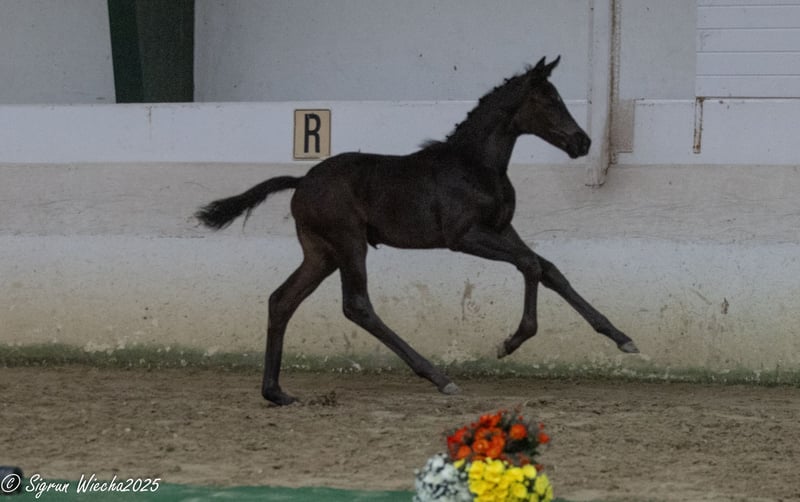 Tall and long-legged, this daughter of Olymp presents herself just like her father, who is also on the path to a celebrated career in high-level dressage. She embodies the classic breed type, possesses highly noble manners, and attracts many eyes with her high nobility. The Helium granddaughter, equipped with significantly well-structured body parts, moves with great dynamism, always in excellent self-carriage, always under the center of gravity, and is both energetic and tactful at the same time. On her maternal side, she refers to one of the best lines in Trakehner breeding: bred under the highly demanding aspects of sport and breeding from the pattern of Herbstkönig - Donauwalzer - Sokrates. She is closely related to the annual champion mare Donaumärchen, the twice national champion family of Donauquelle from Klosterhof, the state champion family of Donauwoge from Klosterhof, and the Donaumonarch, who has won in S-level competitions.