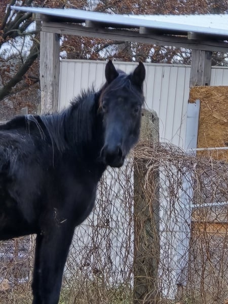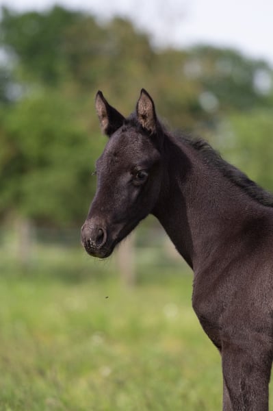 Diese hübsche Dame ist im Mai 2023 geboren und eine aufgeschlossene und neugierige Stute. Hally Gally ist korrekt und gesund. Sie wächst im Herdenverband auf. Schmiedefromm ist sie auch bereits