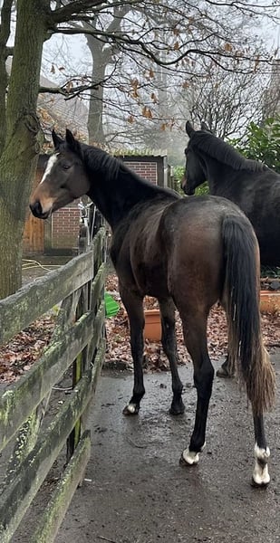Evening Bell Description She brings great joy every day. With her third birthday, Evening Bell continues to impress us with her absolute health and correctness. She is still clearly growing, but it is already obvious what an excellent sport horse she is developing into. She is very attentive and affectionate towards humans, loves to receive tasks, thinks along, is super cuddly, and radiates joy of life. She is still in her age-appropriate phase and has not yet been backed, but she knows everything that is important at this stage. On the lunge line, she responds to voice commands for walk, trot, and canter. She can be led and sent forward at halter, with harmonious transitions, always with a light-footed forward movement. In her stable manners, she has no vices. She is familiar with the farrier and behaves impeccably. She also loads onto the transporter in a relaxed and confident manner. She always approaches hand-led walks trustfully, even when walking along the road. Upon request, Evening Bell can be backed.