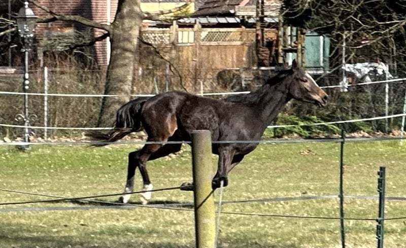 Abendglöckchen Beschreibung Sie bereitet große Freude, jeden Tag Mit ihrem dritten Geburtstag beschenkt uns Abendglöckchen weiterhin mit ihrer absoluten Gesundheit und Korrektheit. Sie ist jetzt natürlich deutlich im Wachstum, dennoch ist schon deutlich zu erkennen, zu welchem hervorragendem Sportpferd sie gerade heranwächst. In ihrem Wesen ist sie dem Menschen in ganz besonderem Maße zugewandt. Sie liebt es, Aufgaben zu bekommen, denkt mit, ist super schmusig und strahlt vor Lebensfreude. Sie ist ihrem Alter entsprechend gerade noch nicht angeritten, kann aber alles, was vorab wichtig ist. An der Longe zeigt sie auf Stimmkommando Schritt, Trab, Galopp. Sie lässt sich am Halfter parieren und schicken, in harmonischen Übergängen, aber immer mit leichtfüßigen Vorwärts. Im Umgang im Stall hat sie keine Unarten. Sie kennt den Hufschmied und benimmt sich tadellos. Ebenso selbstverständlich und unaufgeregt geht sie auf den Transporter. Sie geht an der Hand immer vertrauensvoll, auch bei Spaziergängen an der Straße entlang.