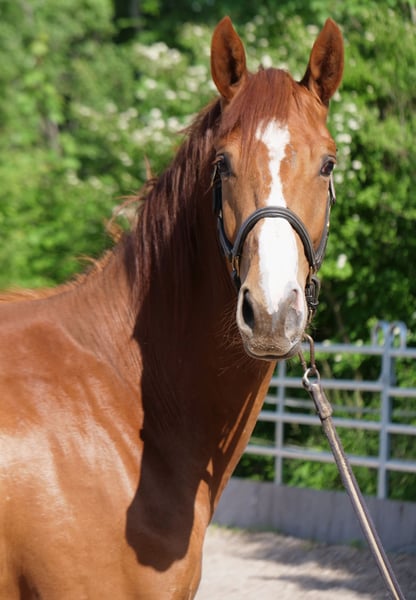 Veelbelovende, sportieve 2-jarige - groot, langbenig en lichtvoetig. Liebchens Ehre is een mensgerichte, beweeglijke jonge merrie, uitgerust met type en kwaliteit, die hoop biedt op een veelbelovende toekomst in de sport en/of fokkerij. Voor meer informatie of om een bezichtigingsafspraak te maken, staan wij graag tot uw beschikking. Wij kijken uit naar uw contact!
