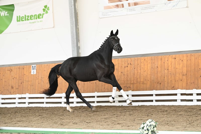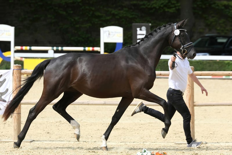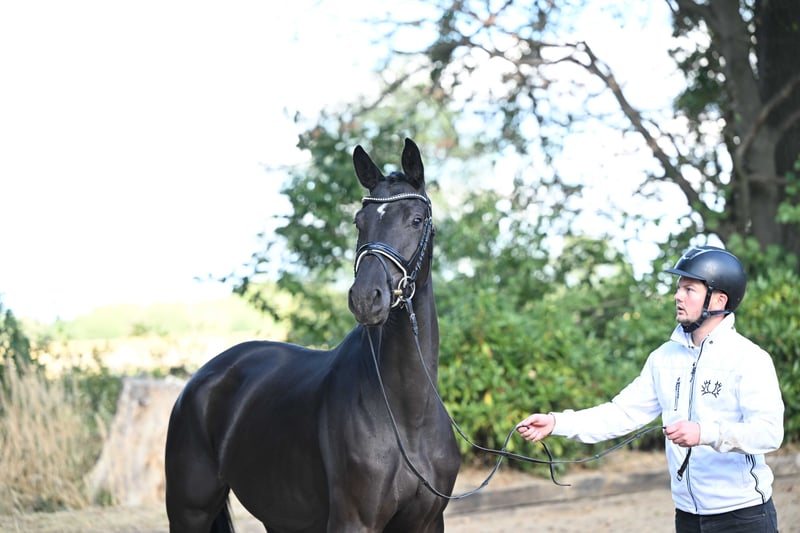 In ihrer großlinigen und vornehmen Silhouette besticht diese exquisite und unter Dressuraspekten hochklassig gezogene Diva durch Kadenz und Leichtfüßigkeit ihrer Bewegungen – ganz nach dem Muster ihrer als ZSE-Siegerstute dekorierten Mutter, die Platzierungen in M-Dressurprüfungen errang und mit dem Ib-Preis der Sportklasse, Abt. 2 anlässlich der diesjährigen Trakehner undesstutenschau ausgezeichnet wurde. Der kostbare mütterliche Stamm aus traditionsreichen ostpreußischen Wurzeln wird seit Generationen im Hause Wassermann-Gut Halstenberg gepflegt und brachte unter anderem den auf der Grand Prix-Bühne erfolgreichen Reservesieger Saint Cloud (Karin Rehbein) sowie die hochgeachteten Vererber Sigurd (USA), Siegbert und Sir Chamberlain hervor. Die Stute wird anlässlich des Trakehner Hengstmarktes am 28.112025 bei einer Auktion versteigert, alle Informationen finden Sie unter: https://bid.trakehner.auction/auctions