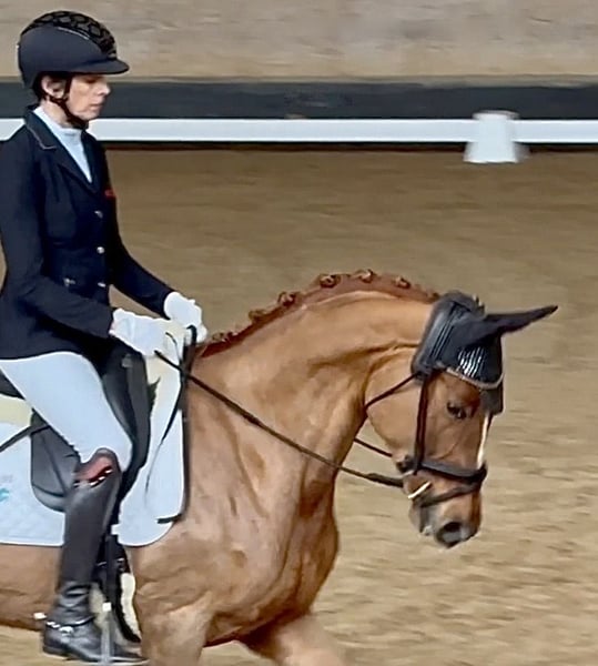 Il 9 novembre 2025, Hailey ha partecipato per la prima volta a una prova di equitazione per cavalli da dressage. (vedi il video attuale). Hailey è una splendida e nobile cavalla rossa. È facile da montare (e ben seduta), socievole e tranquilla. Cerca il contatto con le persone (è una cavalla affettuosa) e si comporta amichevolmente con gli altri cavalli. Rimane calma, ad esempio, quando viene montata da sola nella scuderia o nel paddock esterno – anche quando altri cavalli vengono lavorati contemporaneamente. Tra maggio e giugno 2024 è stata messa in longe e abituata alla sella e al cavaliere. Successivamente, è tornata in stalla e al pascolo per un anno, poiché nata tardi. Ad agosto/settembre 2025, Hailey ha partecipato alla prova di prestazione per puledre presso il Verband Bayerischer Züchter a Monaco-Riem. Ha ottenuto un punteggio di 7,9 nella parte dedicata alla dressage! Valutazioni della prova di selezione, tra le altre: Carattere 10,0; Temperamento 9,0; Disponibilità al lavoro 9,5; Costituzione 9,0 Stato di salute = in perfetta forma. Raggi X del 26/08/2025: molto buoni, senza riscontrare anomalie! Linee di sangue di Hailey: Padre: P.H. Karim Dorè – ha vinto la classe M di dressage all’età di 6 anni. (vedi l’immagine allegata – stallone rossonero). Inoltre, il suo pedigree paterno include i cavalli da Grand Prix E.H. Imperio ed E.H. Insterburg – i due Trakehner “stelle” più valutati nel 2025, rispettivamente al primo e secondo posto. Madre: St.Pr. e Pr.St. Hetidze v.H. – ha vinto la classe M di dressage. Addestrata fino a S-Dressage, purtroppo si è infortunata, diventando poi una cavalla da riproduzione di successo. (vedi immagine allegata – cavalla baia). La sorella maggiore di Hailey è la vincitrice di S-Dressage, St.Pr. e Pr.St. Hadiya, da Grand Prix H. Schwarzgold e dalla stessa madre, St.Pr. e Pr.St. Hetidze v.H. Hailey può essere provata in sella in qualsiasi momento. Per un provino di monta presso l’impianto di Waakirchen, si prega di contattare e concordare un appuntamento con l’istruttrice e amazzone Kathrin Reisinger. Cellulare: 0173 2732008.